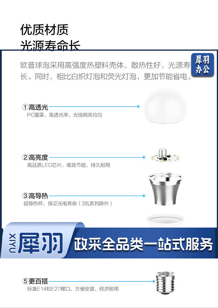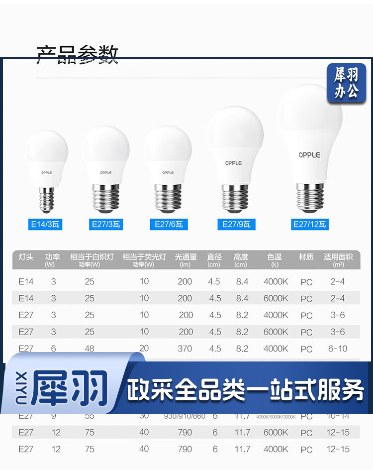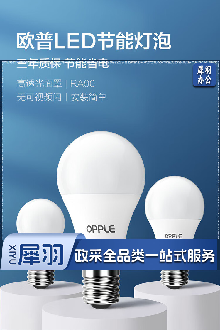 欧普(OPPLE)led灯泡节能大螺口家用商用大功率光源超亮E27高显色球泡螺旋 【高显色】6W白光【E27大螺口】