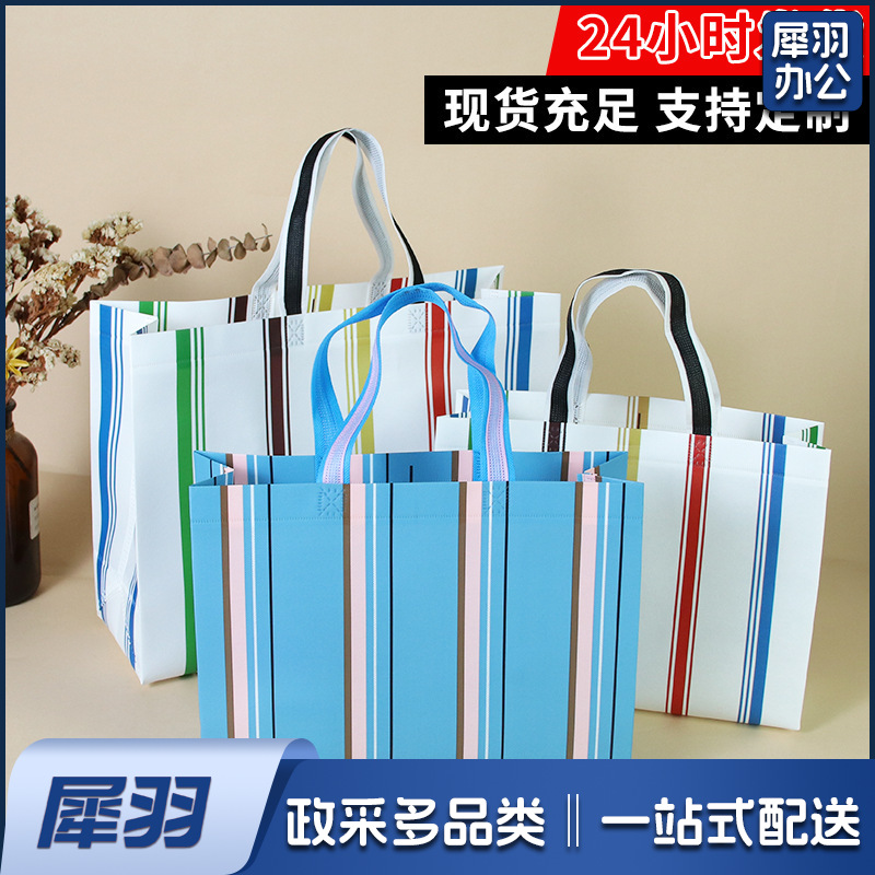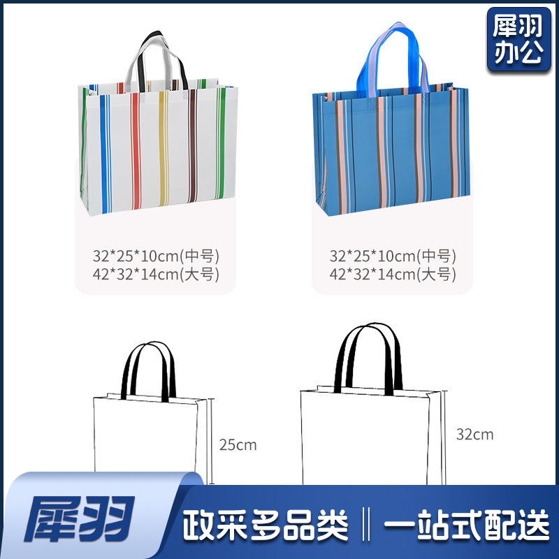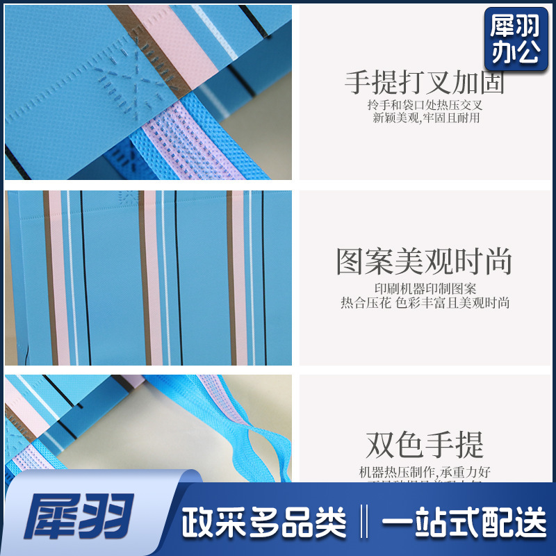 (条纹蓝底42*32*14cm)无纺布覆膜立体袋服装内衣购物袋防水防尘加厚手提袋可印logo