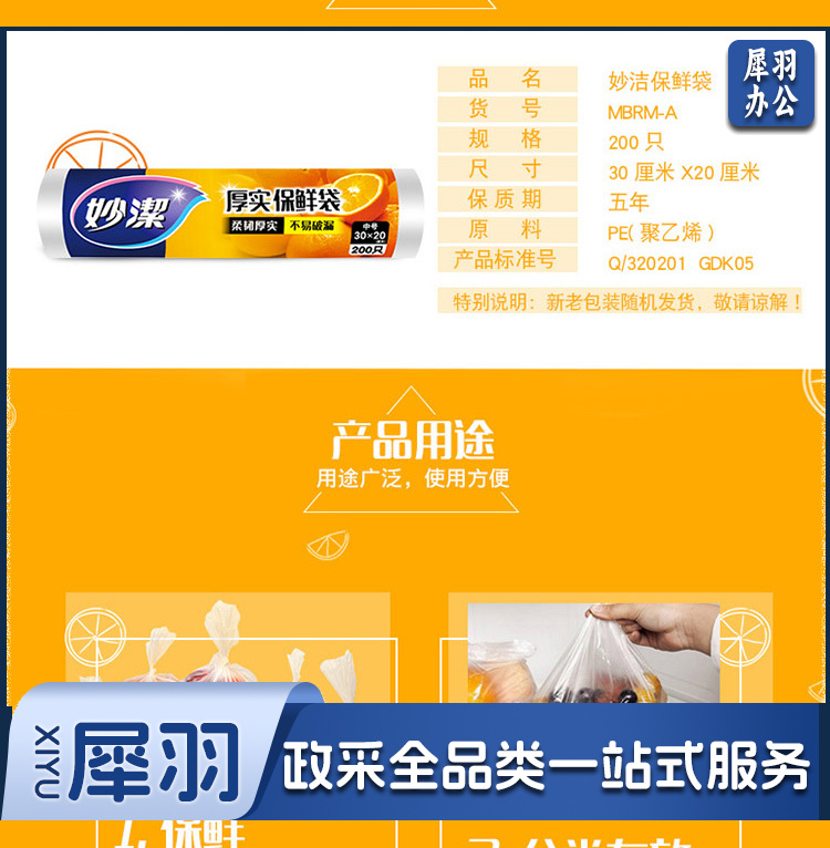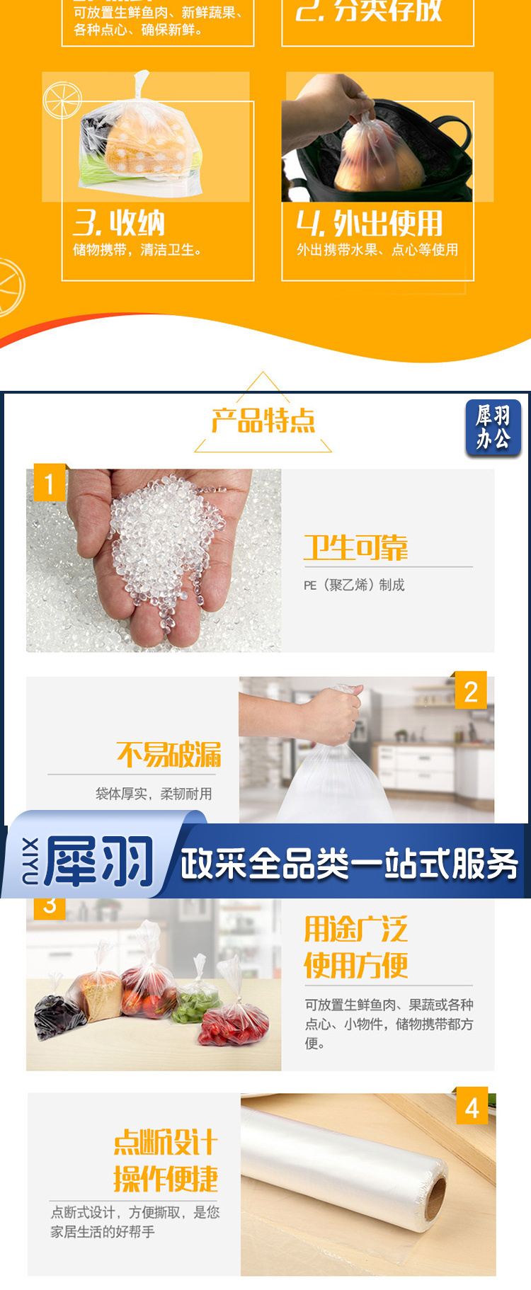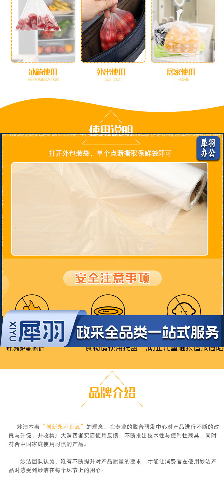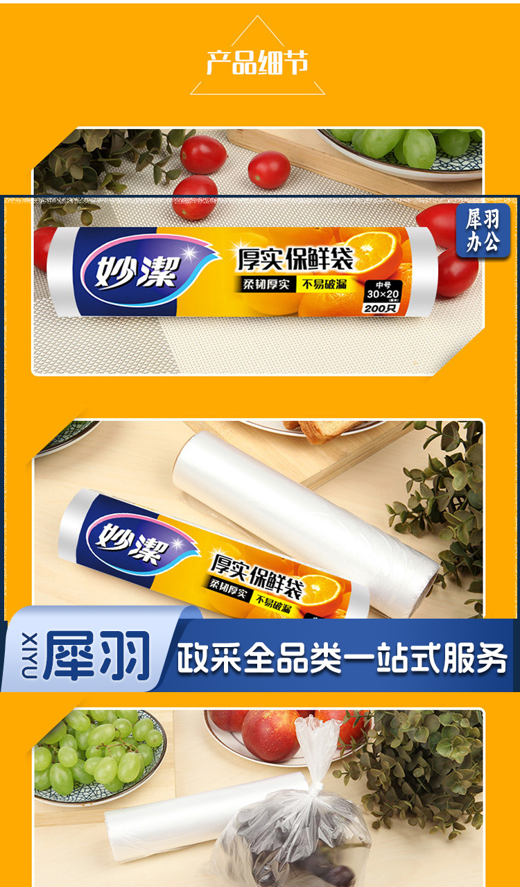 妙洁中号保鲜袋200只 加厚实塑料食品袋子厨房
