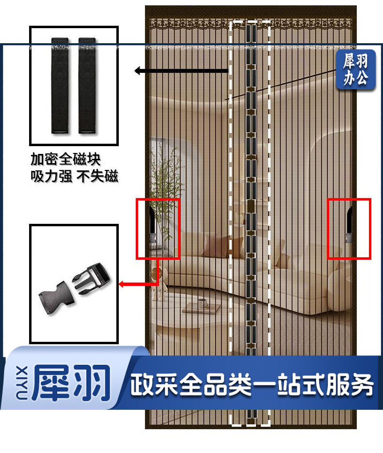 全磁条防蚊门帘磁性自吸磁吸纱窗魔术贴免打孔纱门夏季防蝇沙门网 金刚网咖啡色 条纹款【三边加宽】 120*200