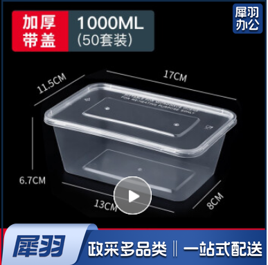 一次性饭盒餐盒长方形透明塑料快餐盒50只装1000ml