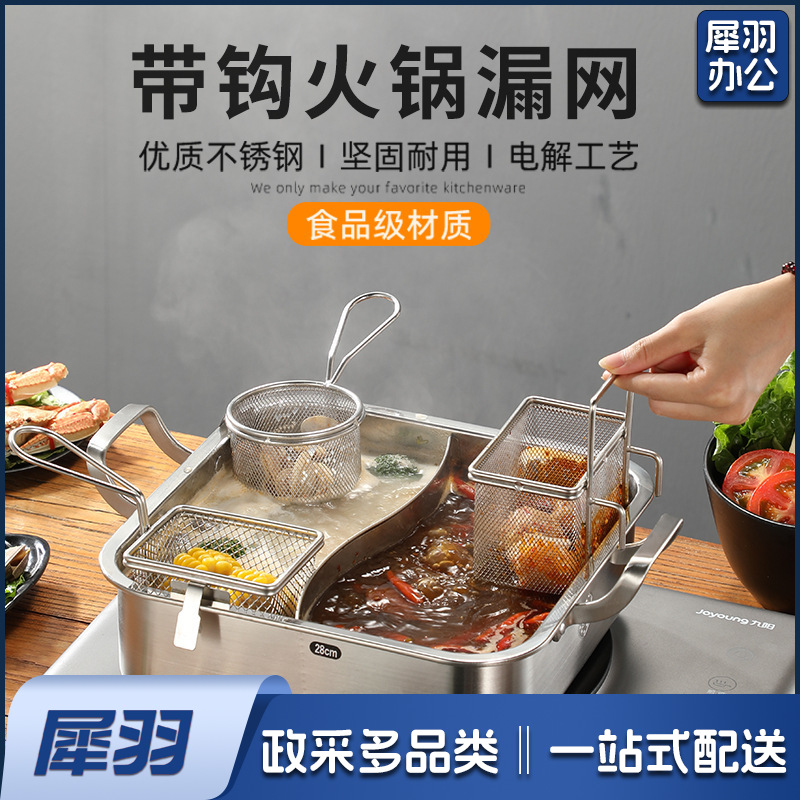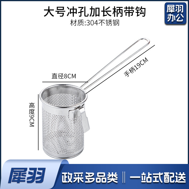 304不锈钢火锅漏勺猪脑漏勺带挂钩脑花涮肉神器过滤网煮面勺带钩(大号加长柄冲孔带钩【304材质】)