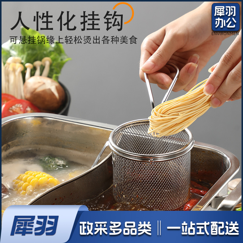 304不锈钢火锅漏勺猪脑漏勺带挂钩脑花涮肉神器过滤网煮面勺带钩(大号高钩方形带钩【304材质】)