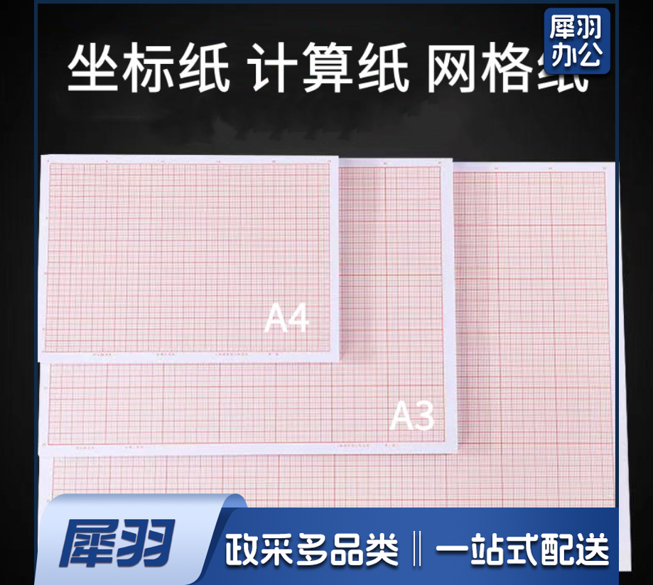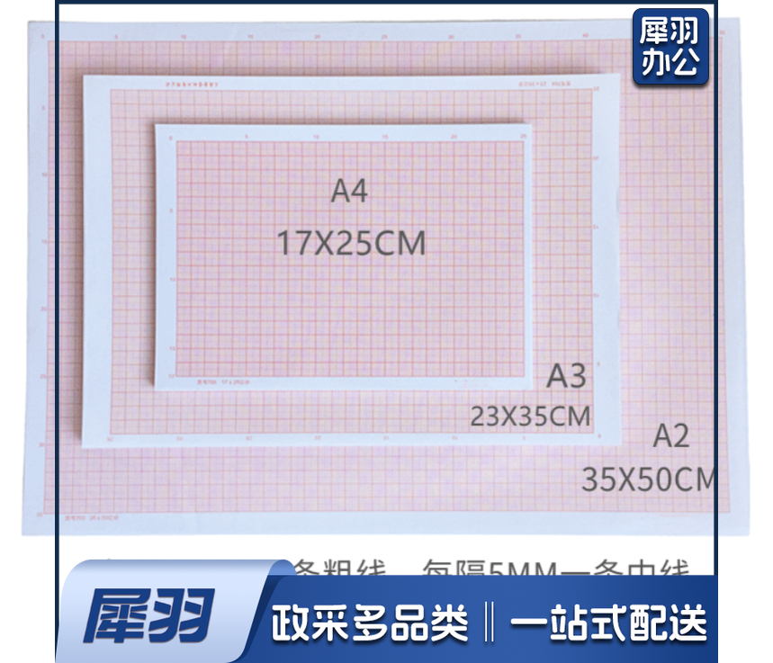 计算纸方格纸对数坐标纸 a4网格纸红色格子纸K线毫米格子绘图纸 A0 (75X105厘米) 10张
