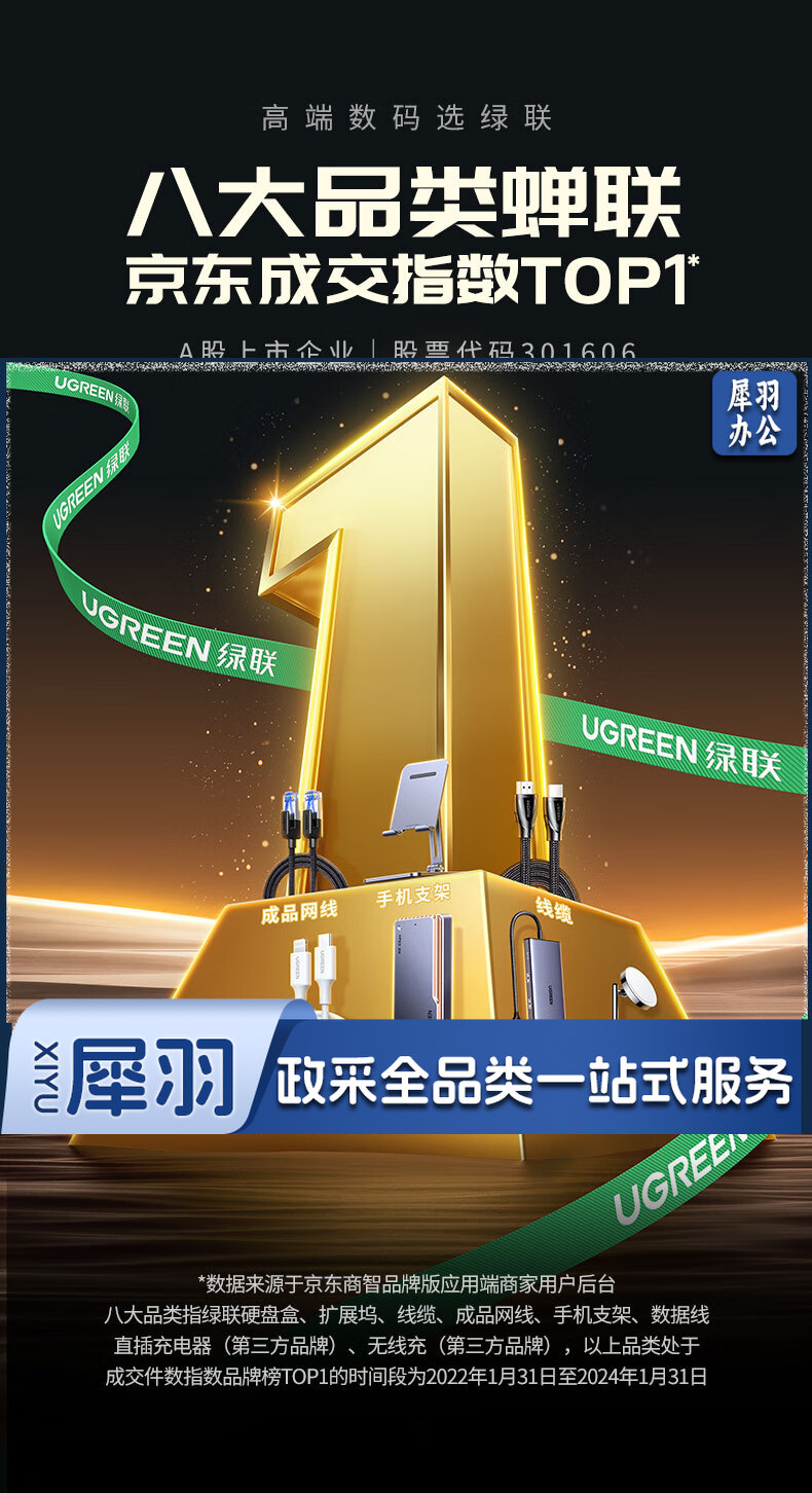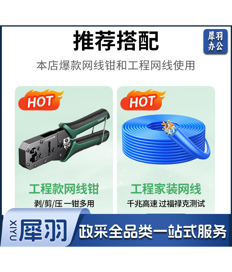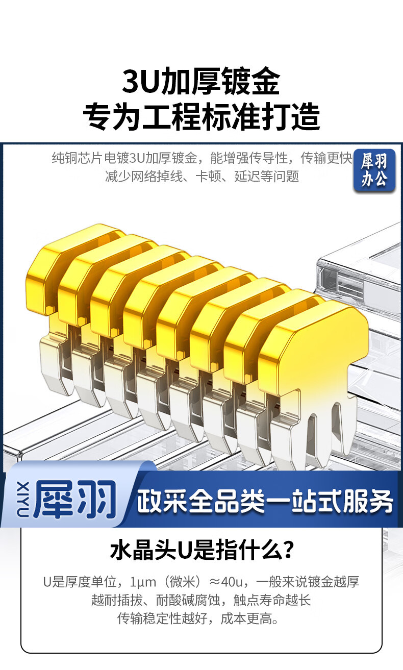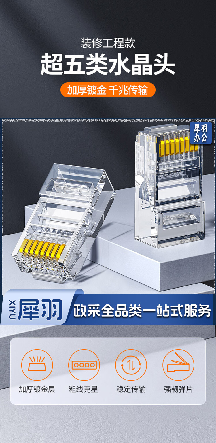 绿联(UGREEN) 超五类网线水晶头 超5类千兆网络接头 镀金工程级RJ45电脑网线连接器 CAT5E非屏蔽水晶头100个