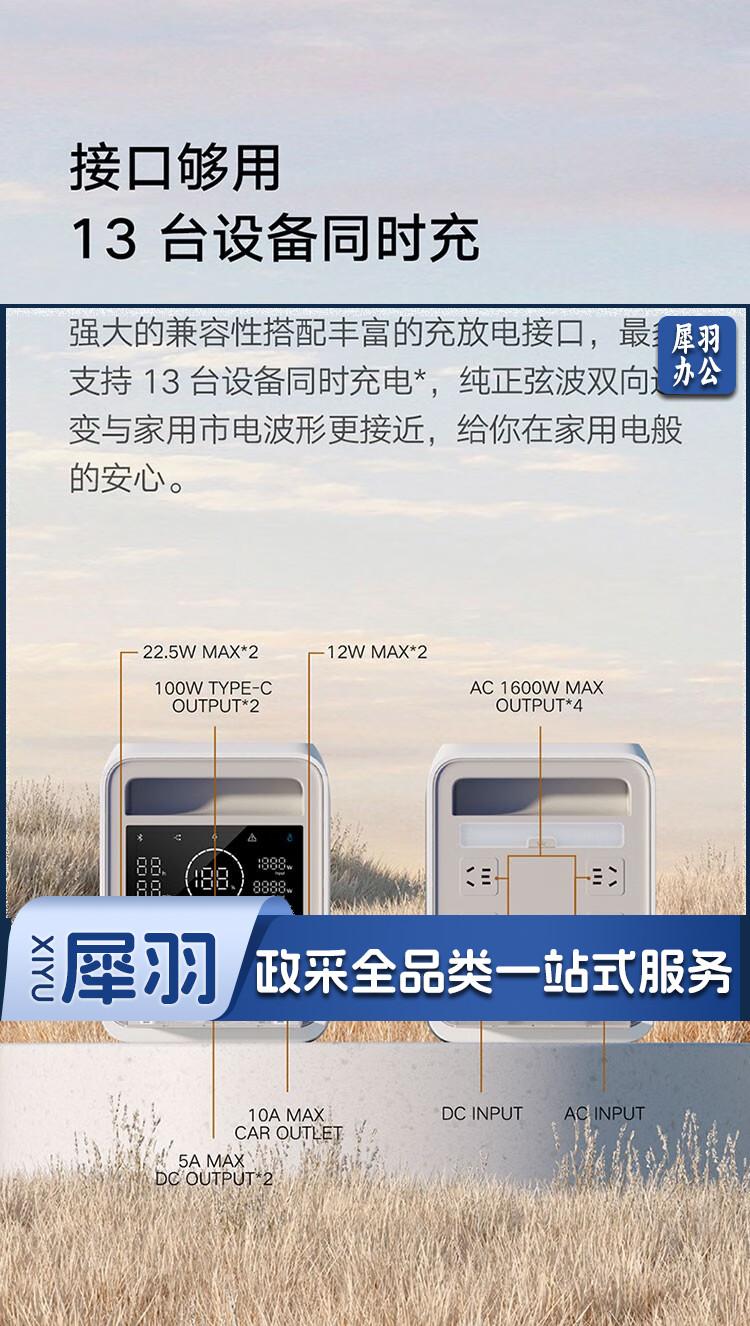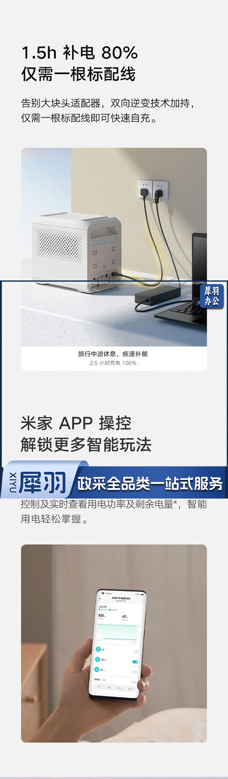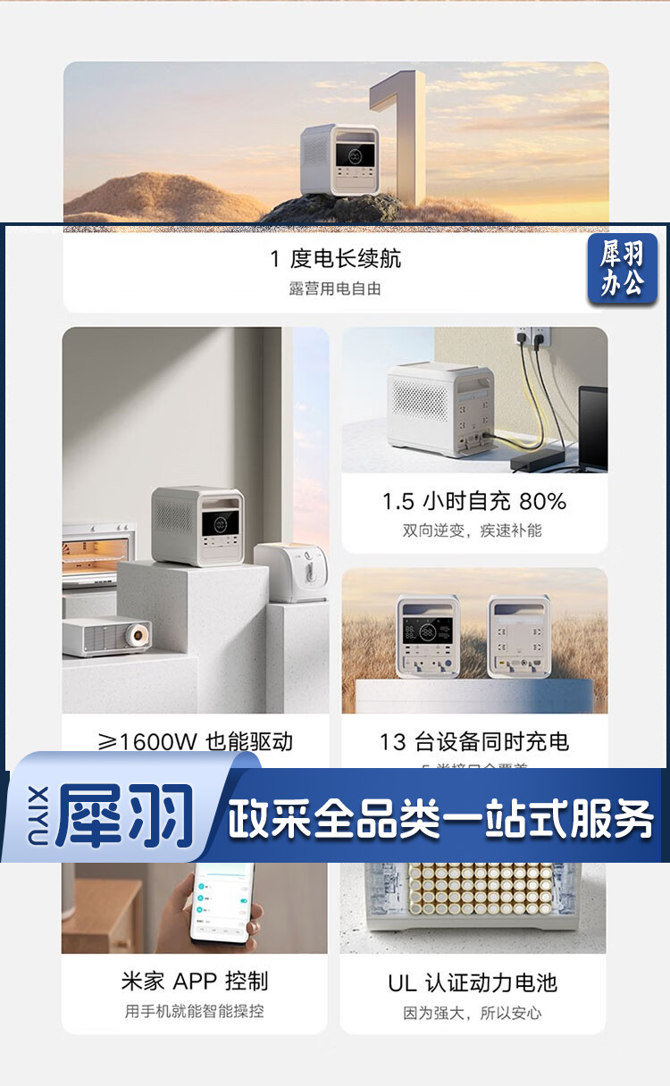 米家小米户外电源1000 超长续航280500mAh大容量 泛光照明灯 独立外壳防护 高低温过充保护 米家户外电源1000