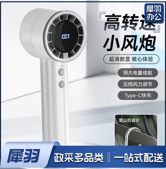 手持小风扇高速小风炮户外随身便携式usb充电小风扇 办公室宿舍大风力风扇 【数显款 白色】