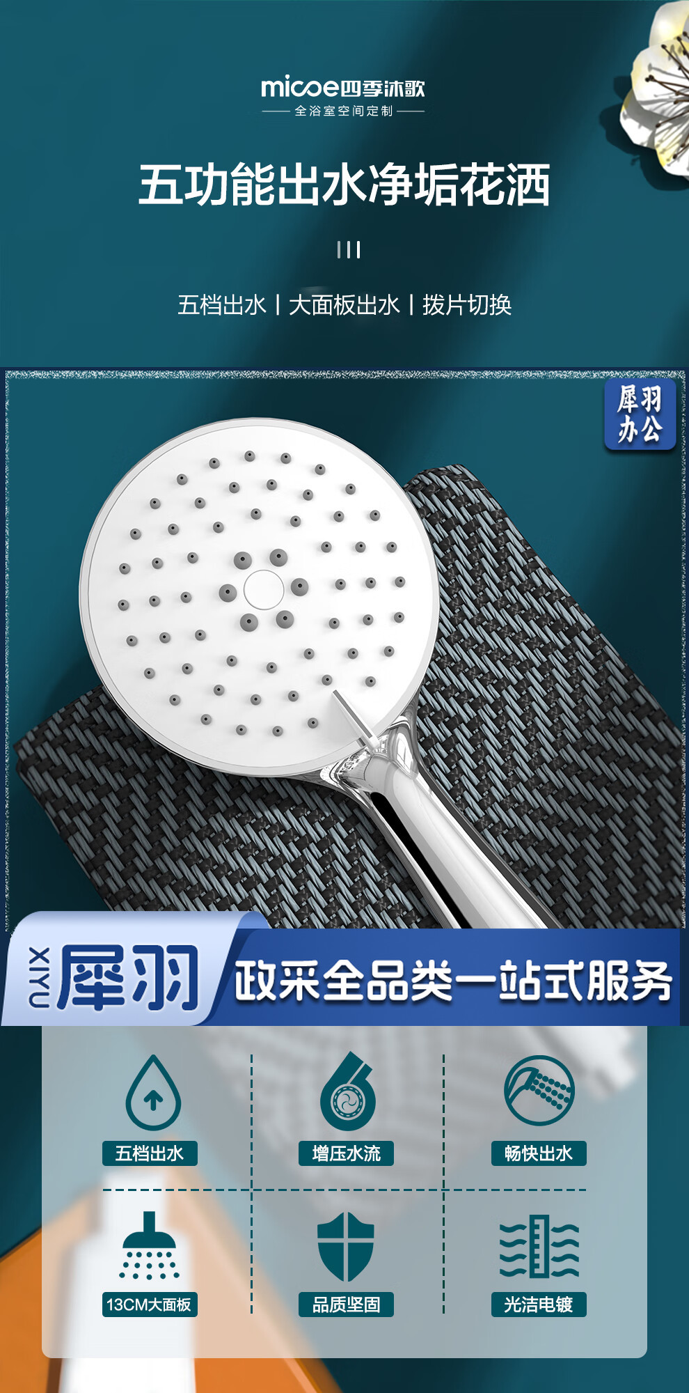 四季沐歌(MICOE)电镀增压淋浴花洒喷头套装 淋浴喷头淋浴头花洒套装手持花洒