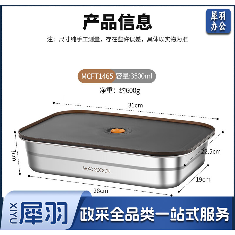 (MAXCOOK)保鲜盒304不锈钢 冰箱收纳盒冷冻盒饭盒便当盒
