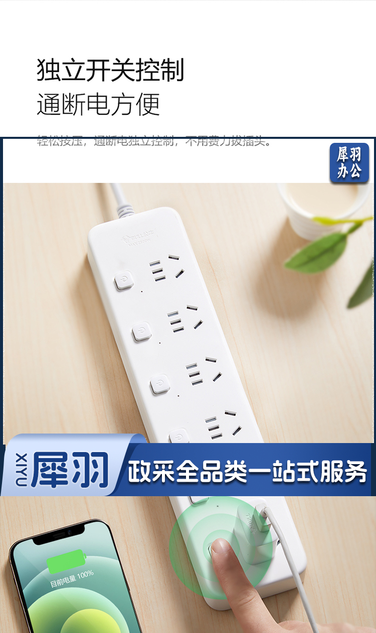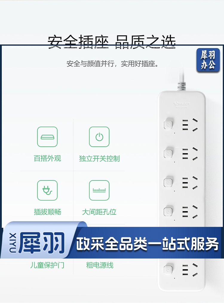 公牛(BULL)新国标分控 6位分控全长5米 独立开关 GN-B2063