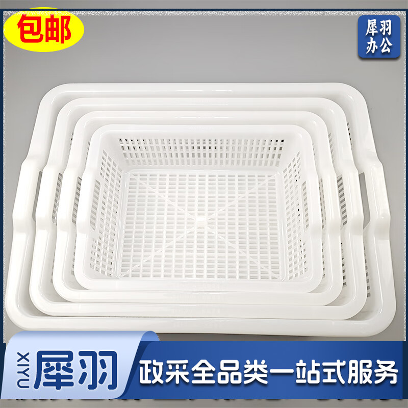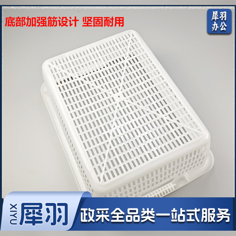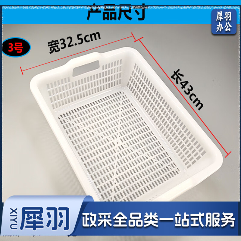 洗菜篮漏网篮长方形塑料筐白色商用镂空放菜筐厨房沥水篮周转筐子 白色把手筐03号长43宽32.5高13.5