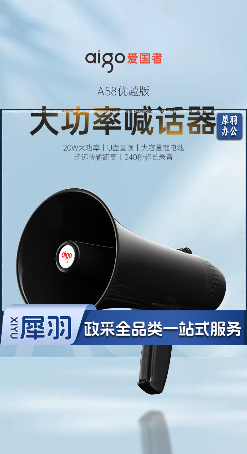 爱国者A58 扩音器无线大喇叭手持喊话器大功率户外录音宣传扬声器小型便携式叫卖大声公可充电