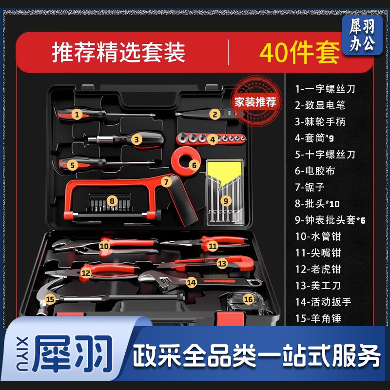 德力西(DELIXI)40件套工具箱五金工具箱万能家用多功能车载木工电工家庭专用维修套装