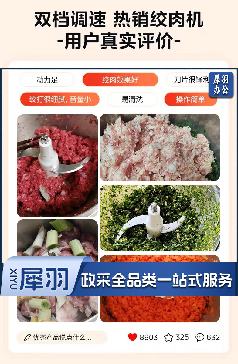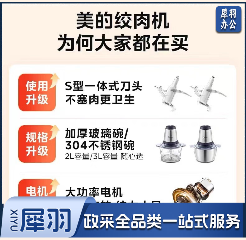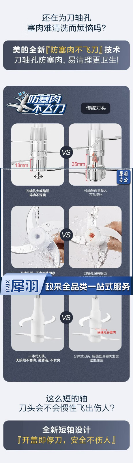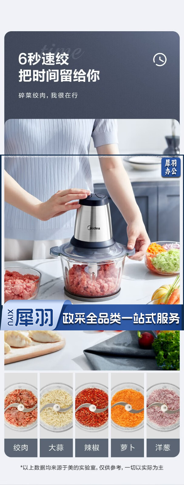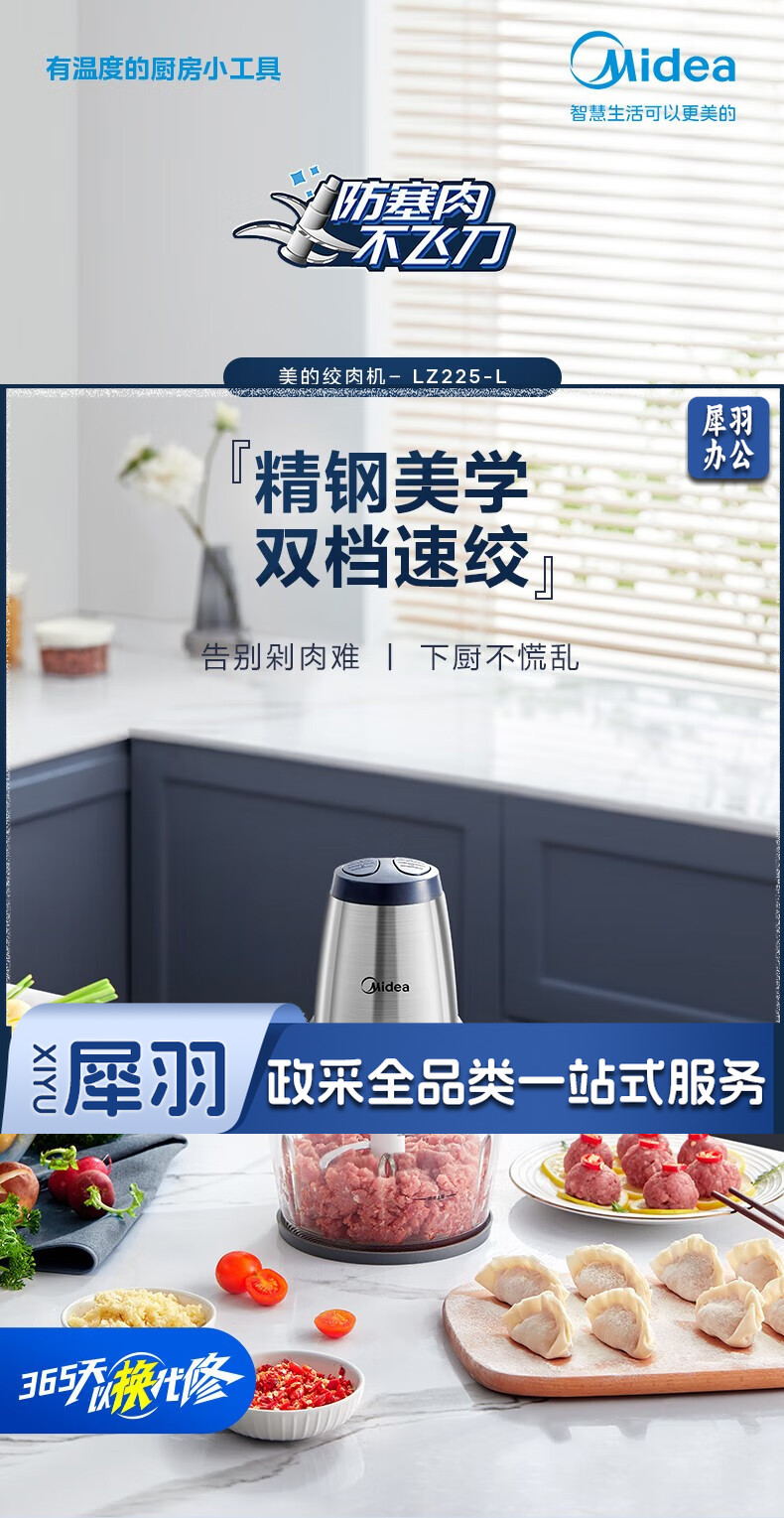 美的(Midea) 绞肉机家用婴儿辅食机料理机碎菜绞肉馅机台式搅拌机智能电动绞馅机碎肉机粉碎机搅肉机 【2L家用配双刀】LZ225B-L