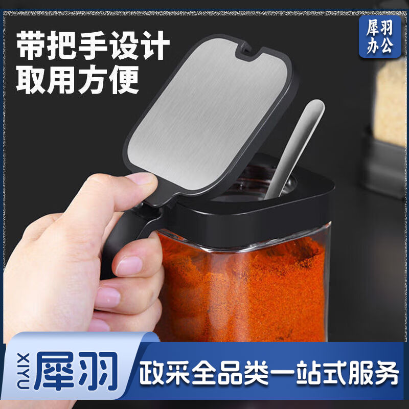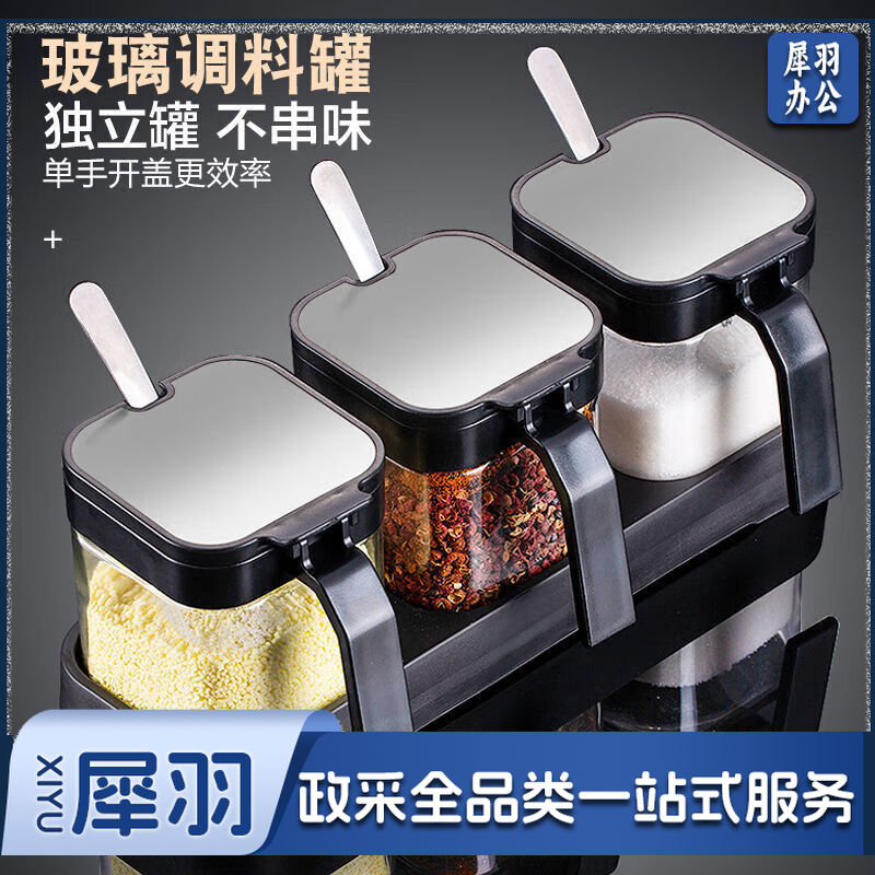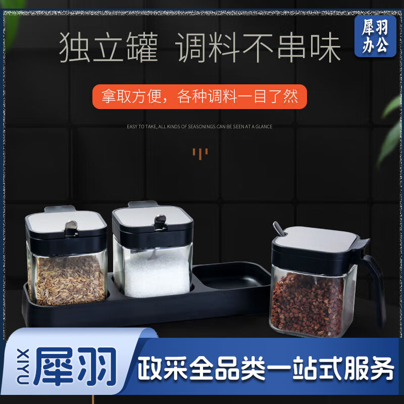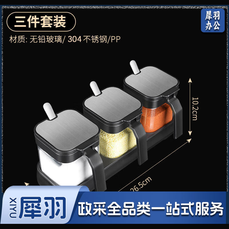 家用调料盒子厨房新款调味料味精瓶盐罐收纳盒不锈钢玻璃套装 三件套+底部调料盒