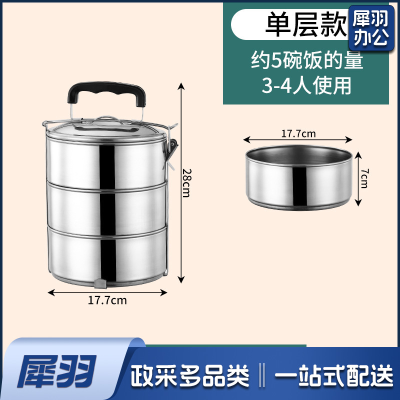 厂家批发户外加厚大容量提锅可加热手提便当盒学生不锈钢多层饭盒(18cm电木柄【五层】)