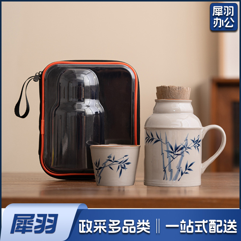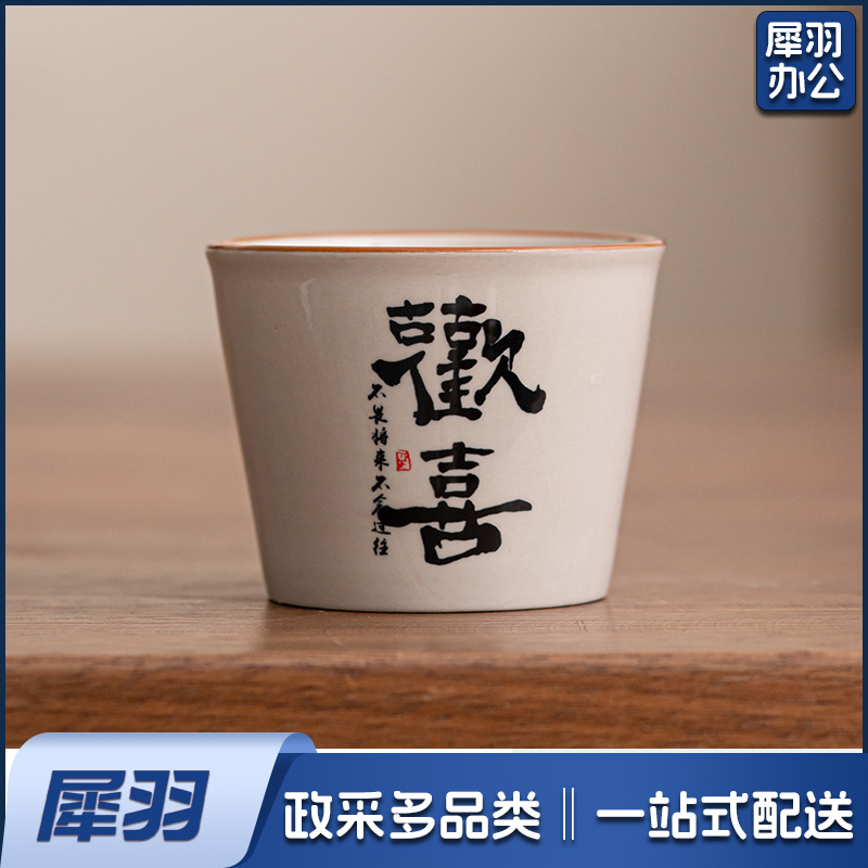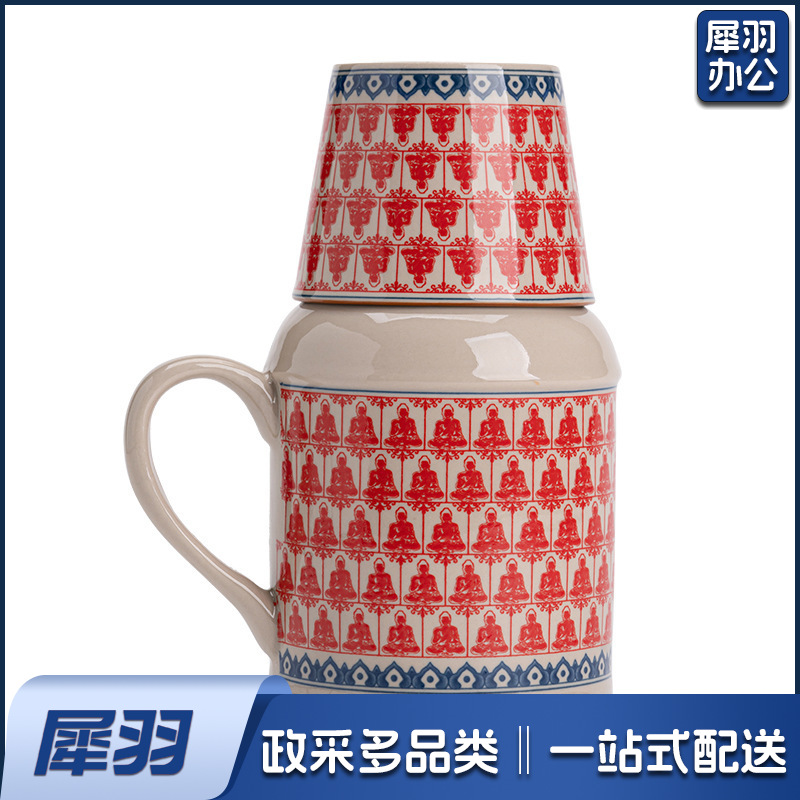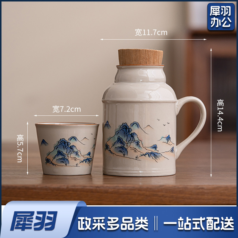 汝窑小暖壶马克杯带盖陶瓷焖茶杯中式大容量保温瓶办公杯子带手柄(草木灰【远山】小暖壶)