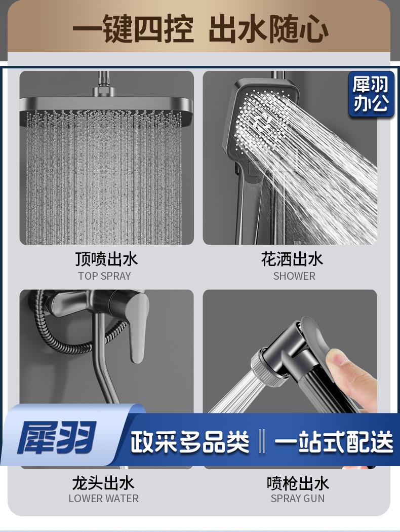 学校淋浴花洒套装淋浴器卫生间精铜枪灰恒温洗澡淋雨浴霸增压花洒(【升级款】白色四档花洒套装◆配13寸巨幕方顶喷)