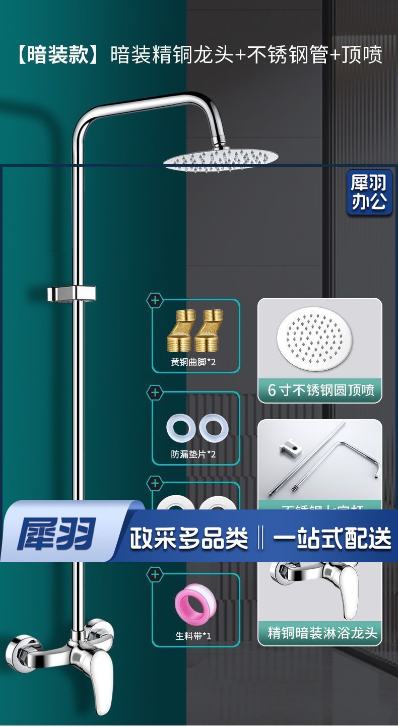 花洒淋浴配件套装公共澡堂淋浴室(【精铜】暗装龙头七字+不锈钢防爆喷头)洗浴池宾馆学校工地简易单水明装暗装冷热花洒套装