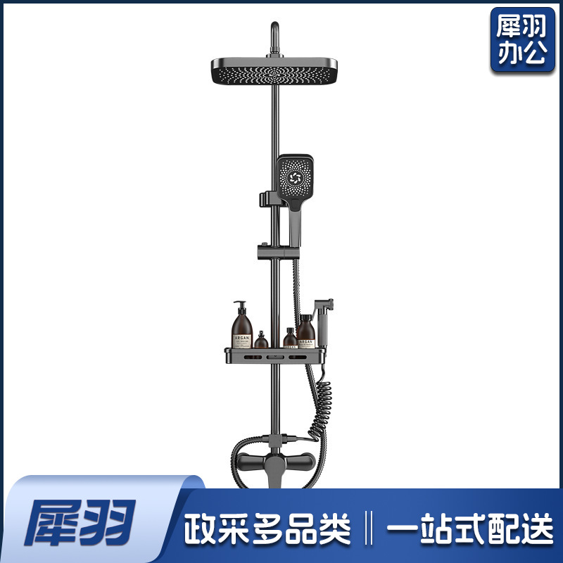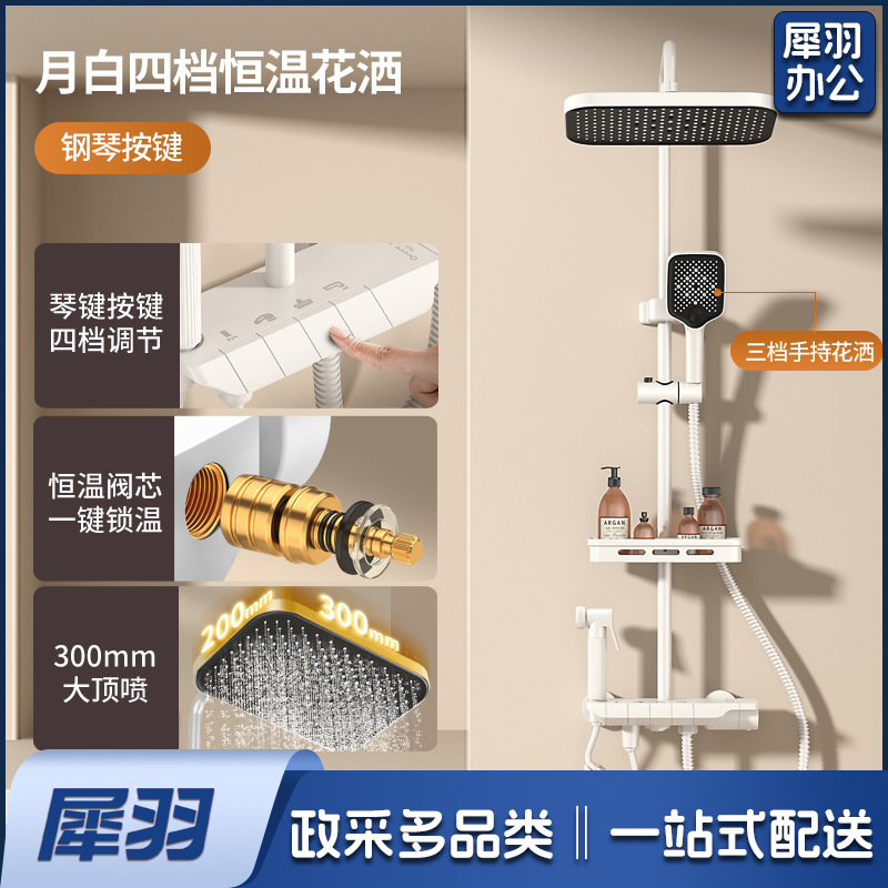 学校淋浴花洒套装淋浴器卫生间精铜枪灰恒温洗澡淋雨浴霸增压花洒(钢琴按键【枪灰色】四档冷热出水●送架)