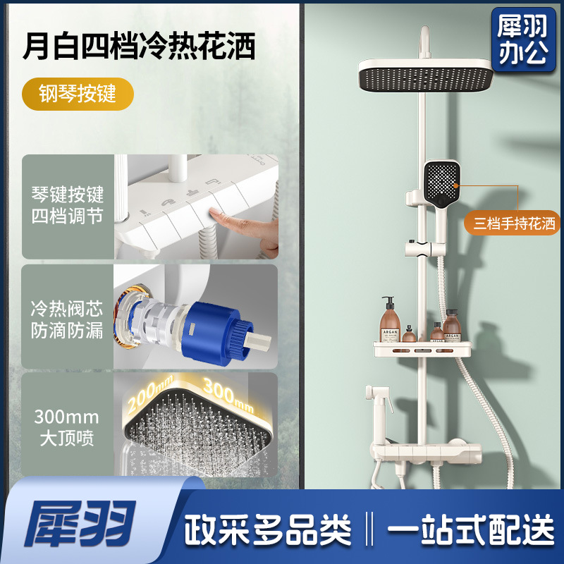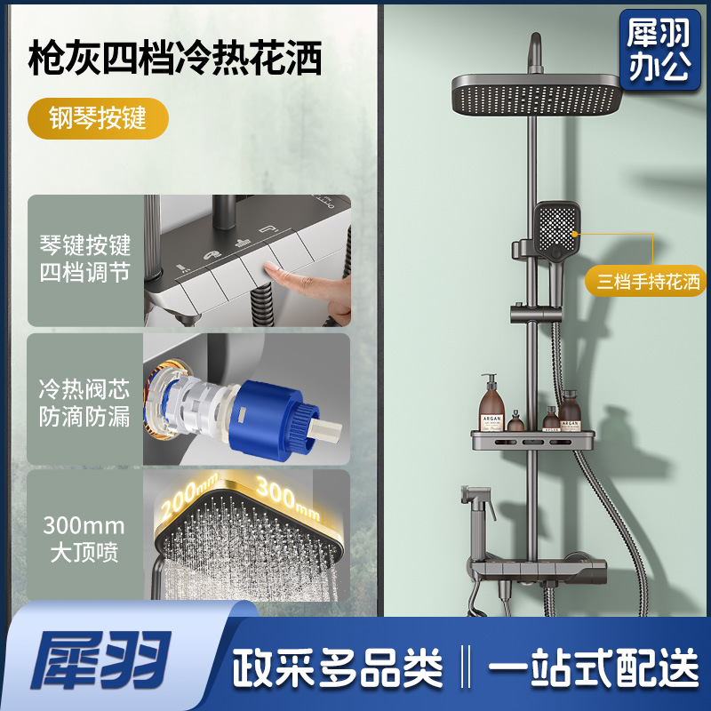 学校淋浴花洒套装淋浴器卫生间精铜枪灰恒温洗澡淋雨浴霸增压花洒(钢琴按键【枪灰色】四档恒温出水●送架)
