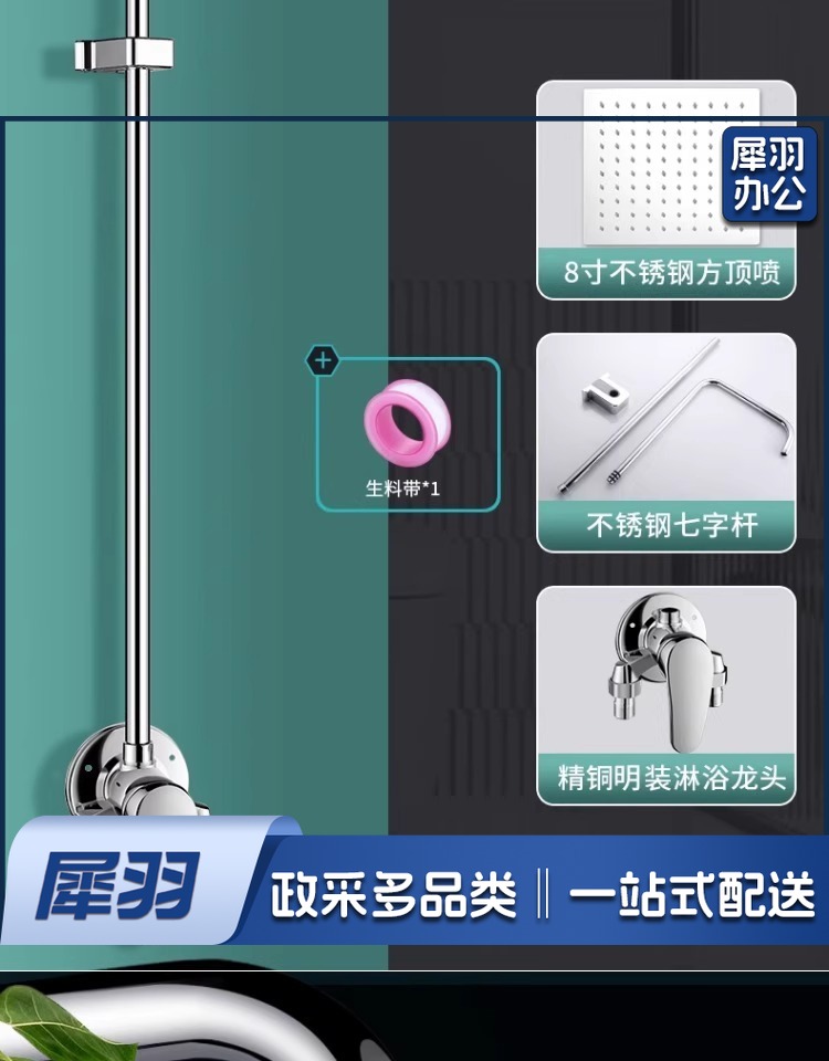 学校用花洒 校用淋浴 (【明装款】精铜龙头+不锈钢管+10寸不锈钢方顶喷)卫浴工程花洒套装澡堂淋浴浴场学校浴池简易明装暗装冷热喷头