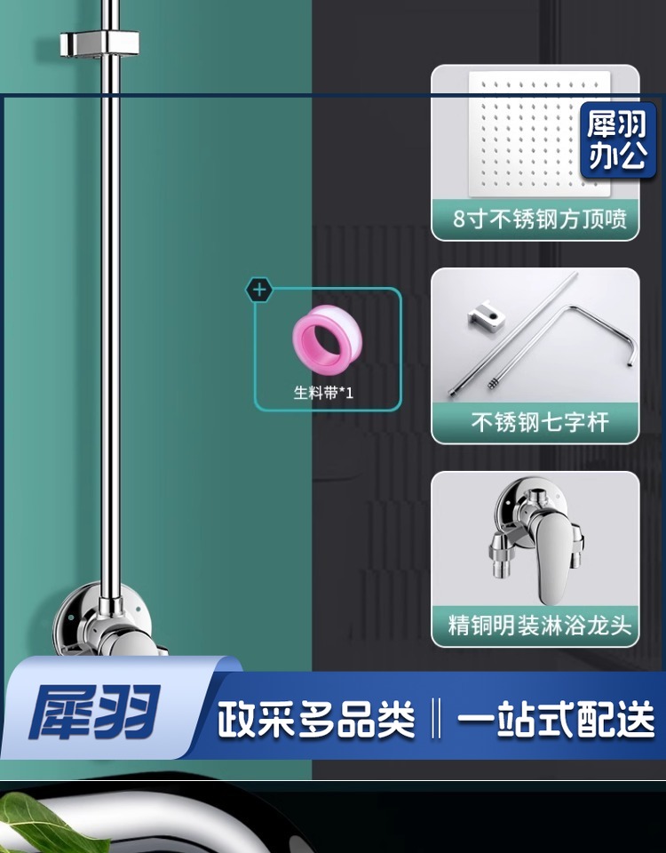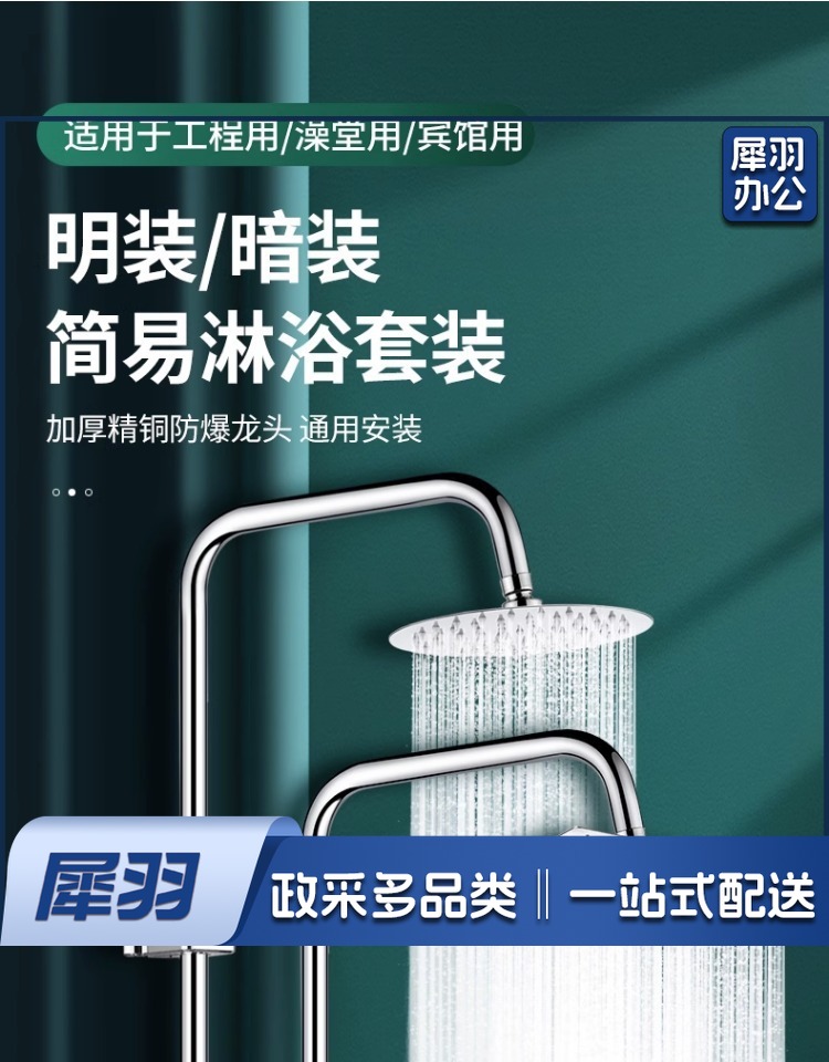 学校洗浴花洒套装(【精铜款】明装龙头+加厚固定杆+6寸圆喷)公共澡堂淋浴器学校浴池冷热水龙头淋浴花洒套装