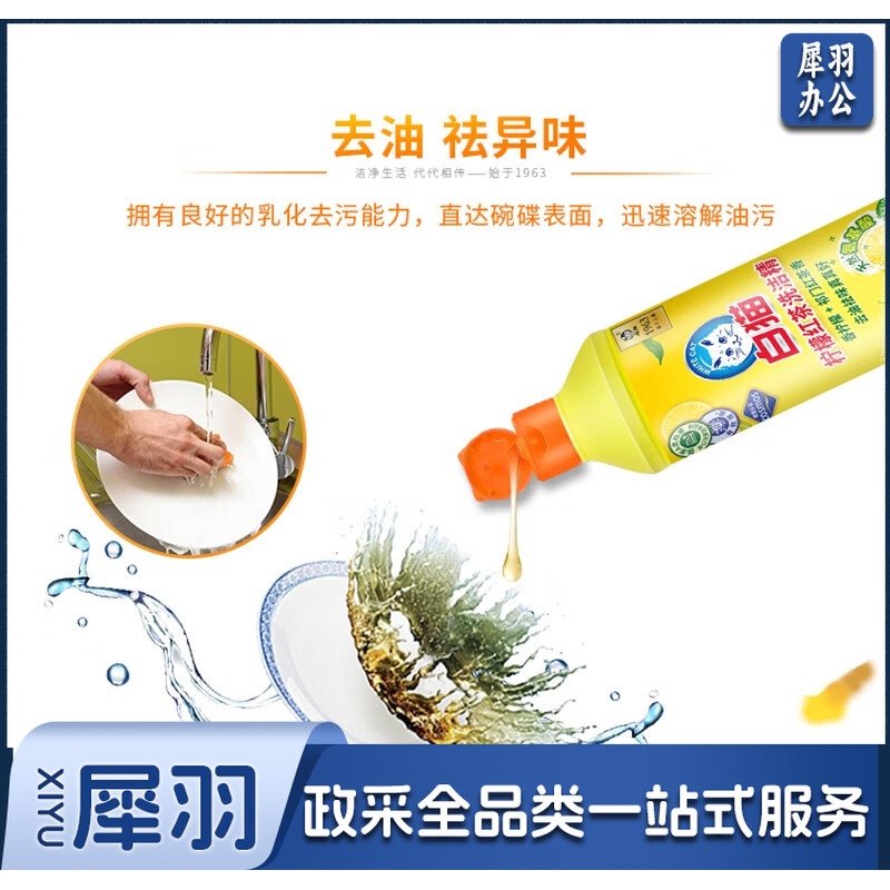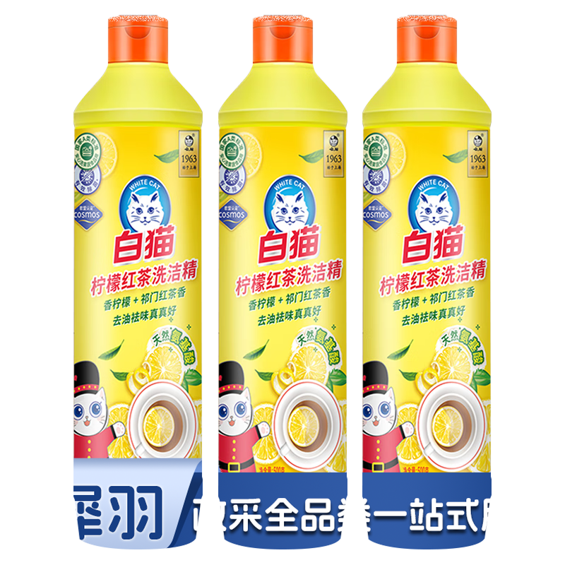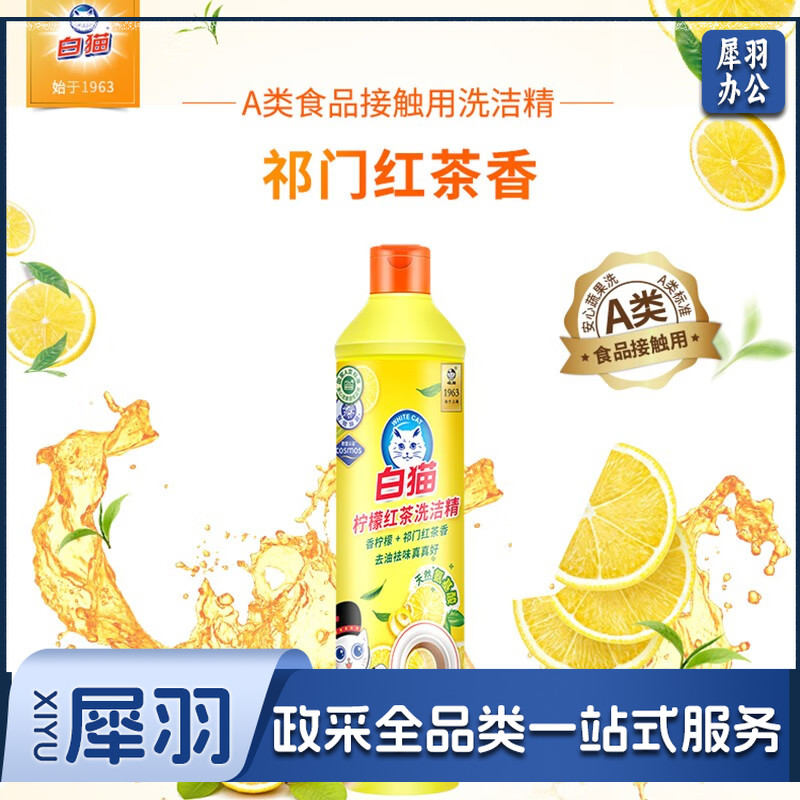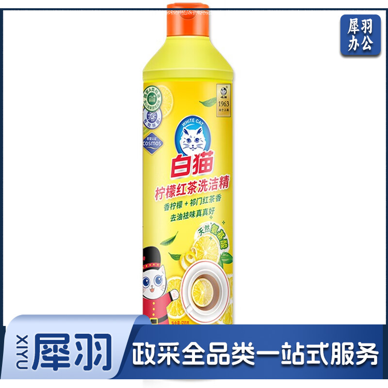 白猫柠檬红茶洗洁精500g实惠装餐饮去油去污老品牌 可洗果蔬A类洗洁剂 500g整箱30瓶