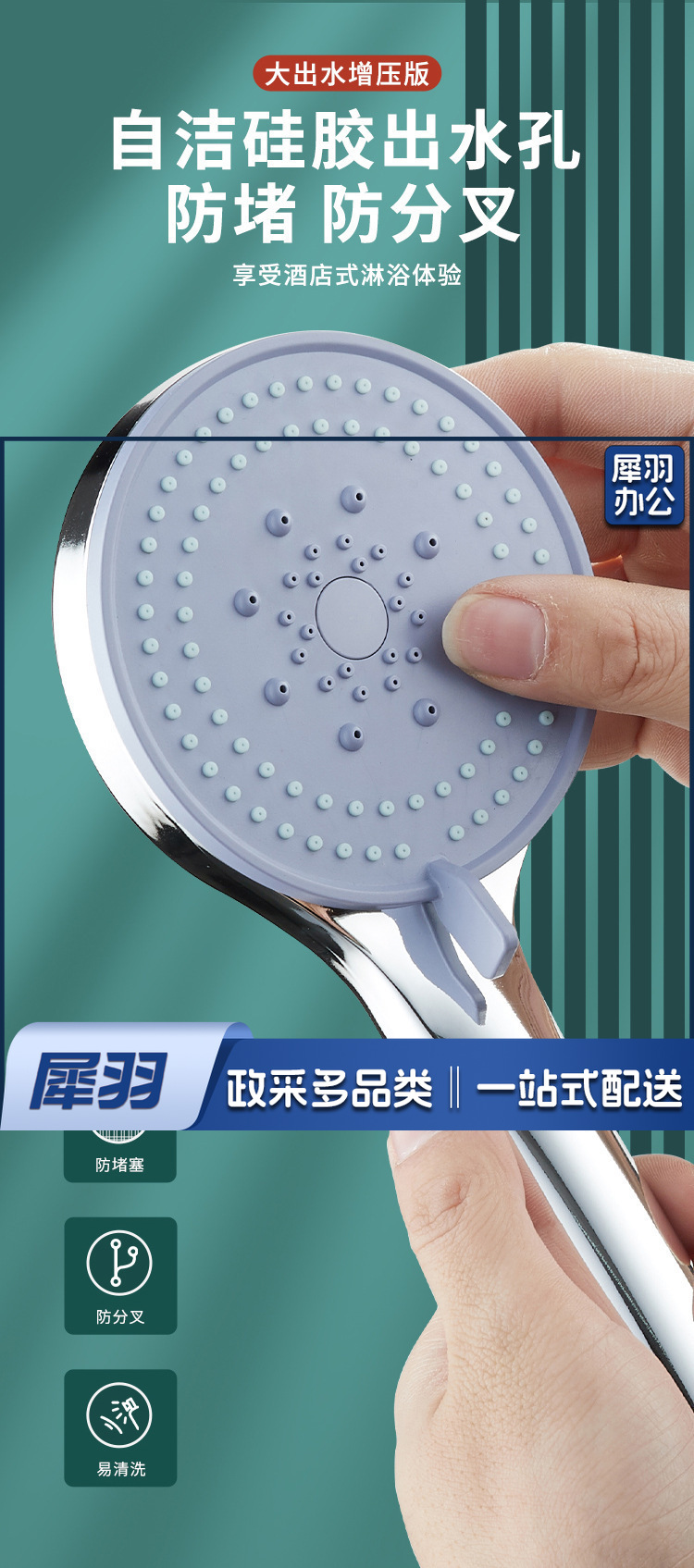 花洒 淋浴喷头 花洒配件 淋浴配件 ( 灰色支架)大出水热水器花洒喷头增压节水浴室莲蓬头手持花晒洗澡淋浴头