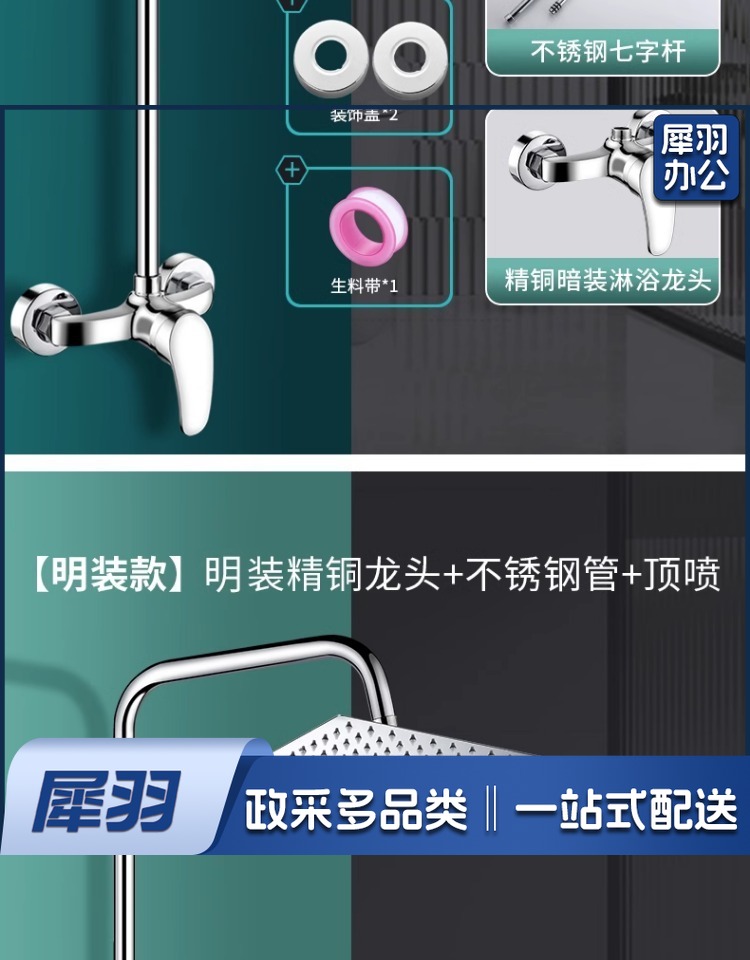 学校洗浴花洒套装(【精铜款】暗装龙头+加厚固定杆+6寸圆喷)公共澡堂淋浴器学校浴池冷热水龙头淋浴花洒套装