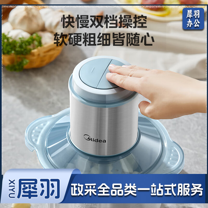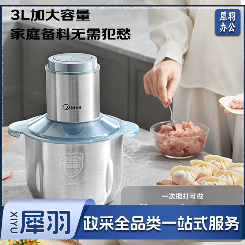 美的(Midea)绞肉机家用 料理机辅食机不锈钢绞馅机碎肉机3L大容量大功率电动绞肉以旧换新【双刀+匀菜杆】55B