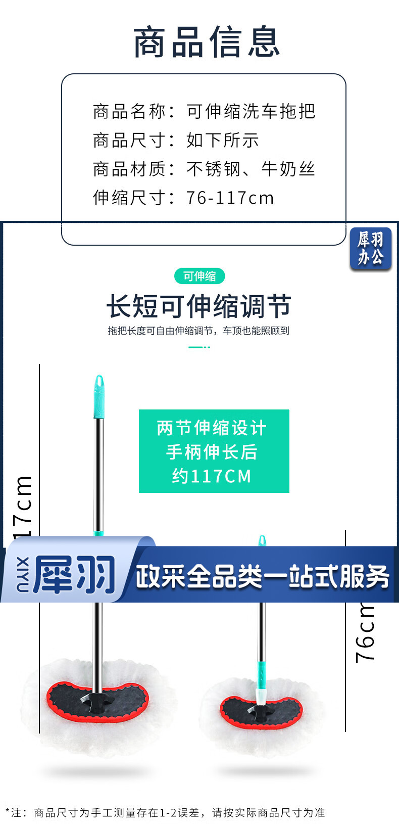洗车拖把长柄伸缩牛奶丝软毛刷子不伤汽车擦车专用冼车刷车工具