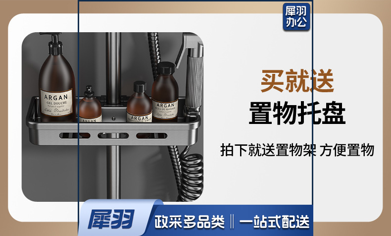 学校淋浴花洒套装淋浴器卫生间精铜枪灰恒温洗澡淋雨浴霸增压花洒(钢琴按键【枪灰色】四档恒温出水●送置物架)