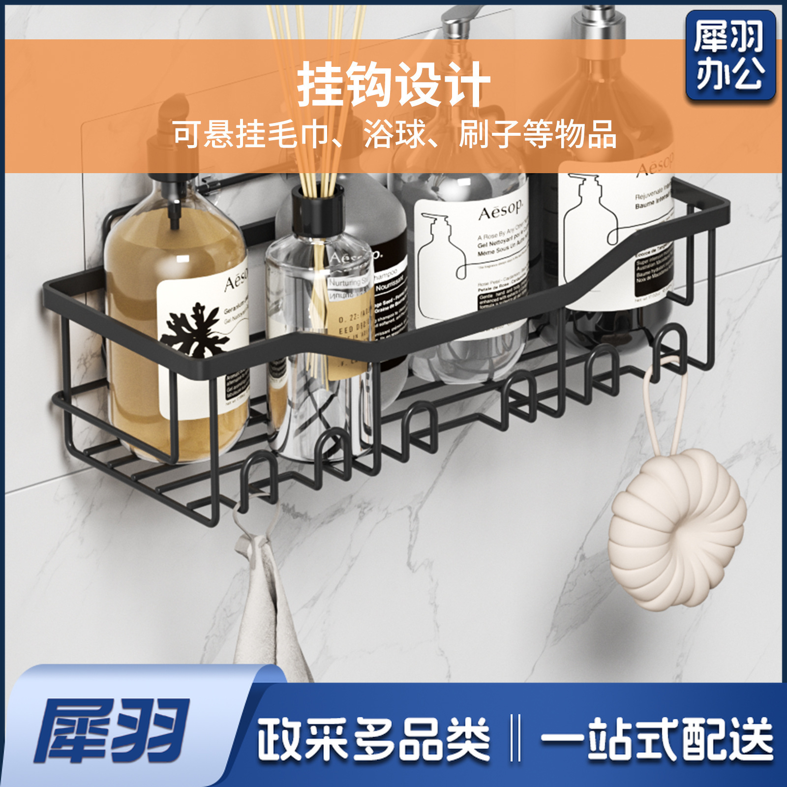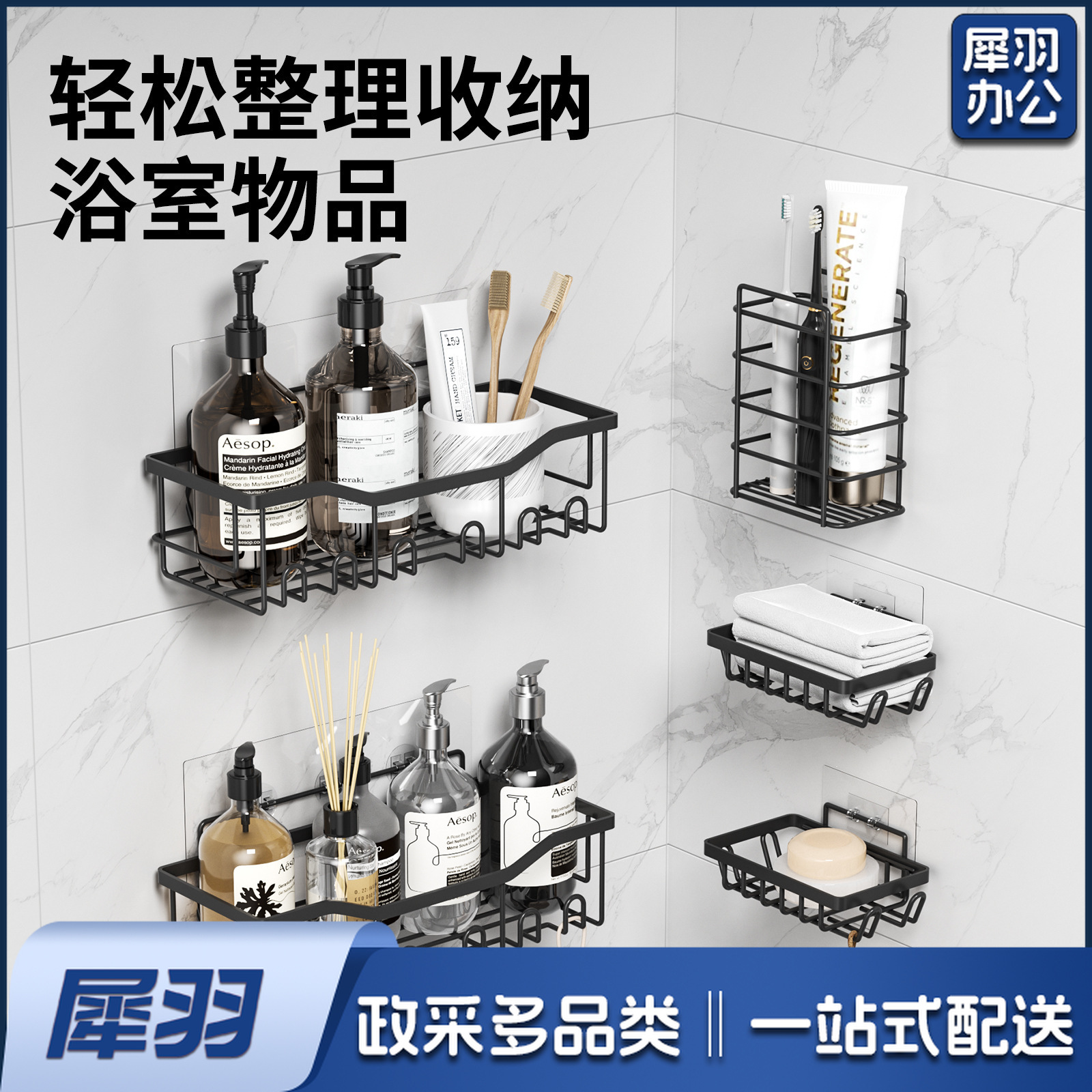 免打孔收纳(四件套)浴室置物铁艺卫生间墙上壁挂式洗漱用品肥皂架子