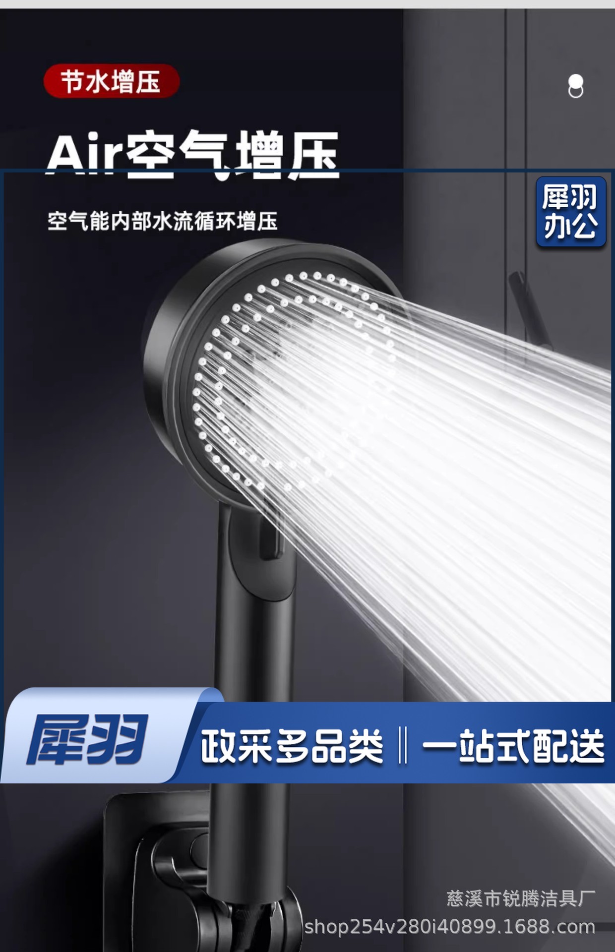 花洒喷头 淋浴喷头 淋浴配件 花洒配件 五档多功能大出水喷雾增压淋浴手持式花洒喷头磨砂黑色莲蓬头套装(1.2米小双扣全塑+自封袋)