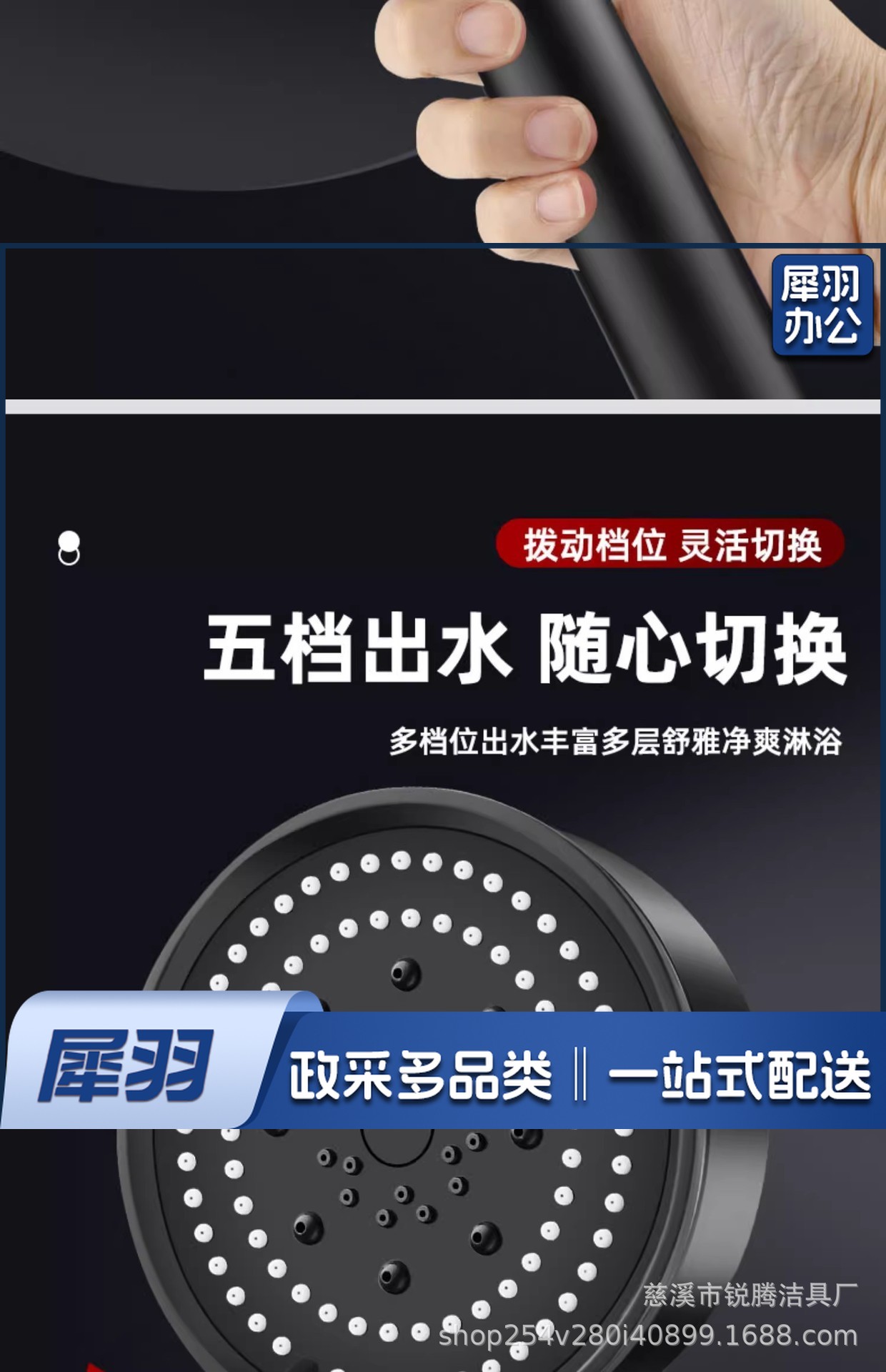 花洒喷头 淋浴喷头 淋浴配件 花洒配件 五档多功能大出水喷雾增压淋浴手持式花洒喷头磨砂黑色莲蓬头套装(1.4米银管水洗锌钢)