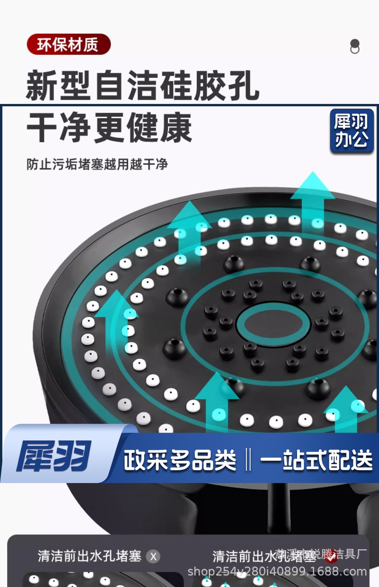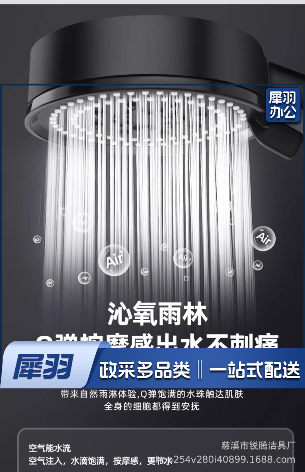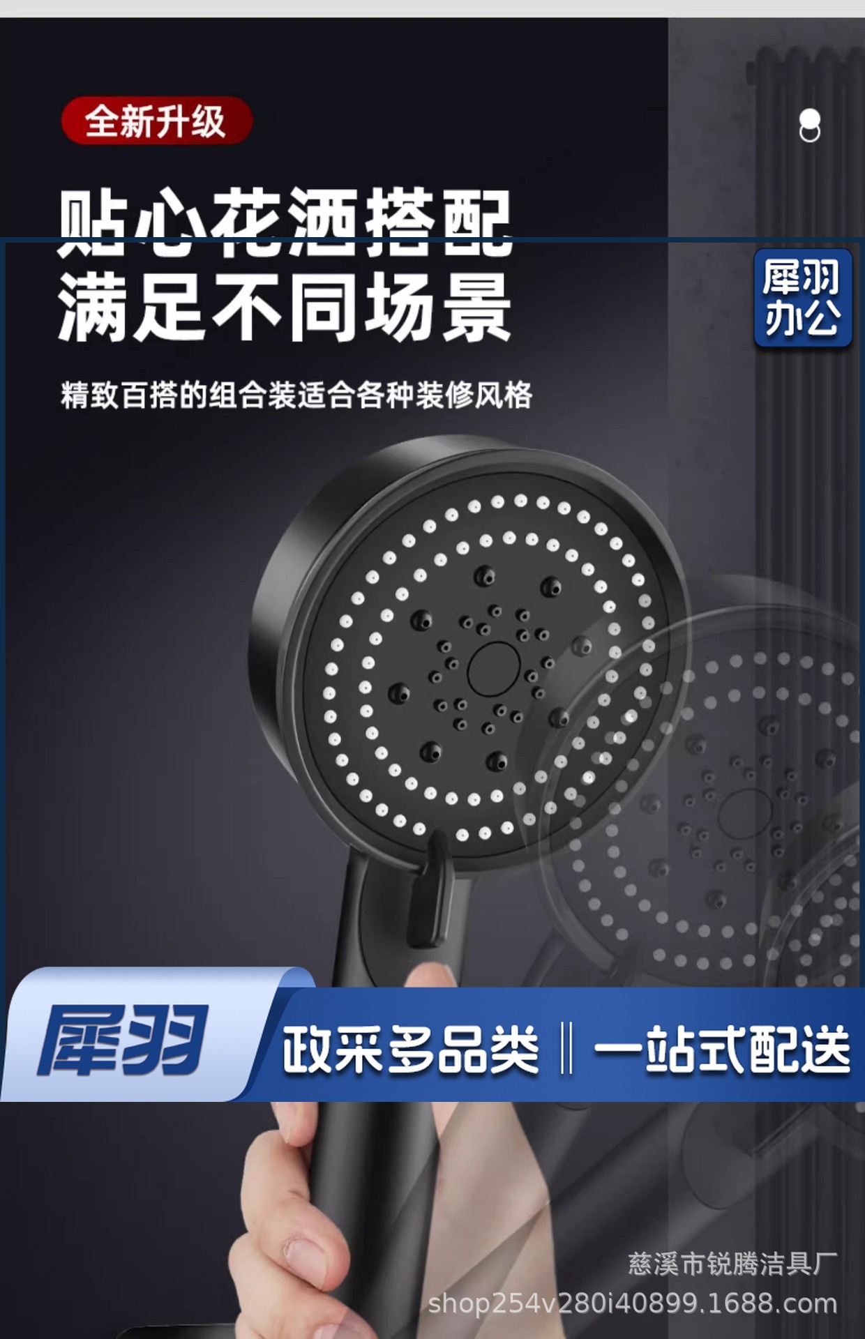 花洒喷头 淋浴喷头 淋浴配件 花洒配件 五档多功能大出水喷雾增压淋浴手持式花洒喷头磨砂黑色莲蓬头套装(1.4米银管水洗全塑)
