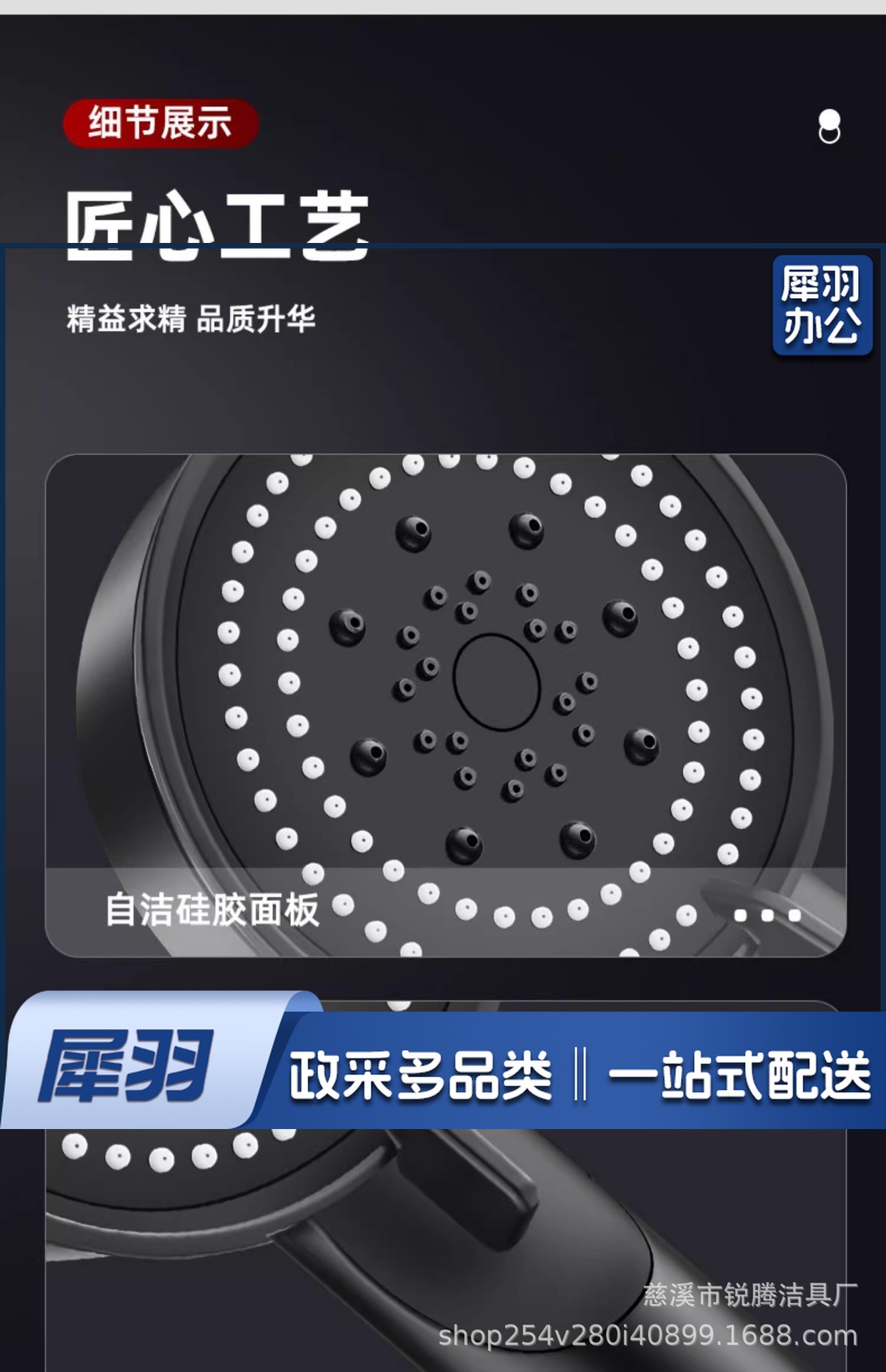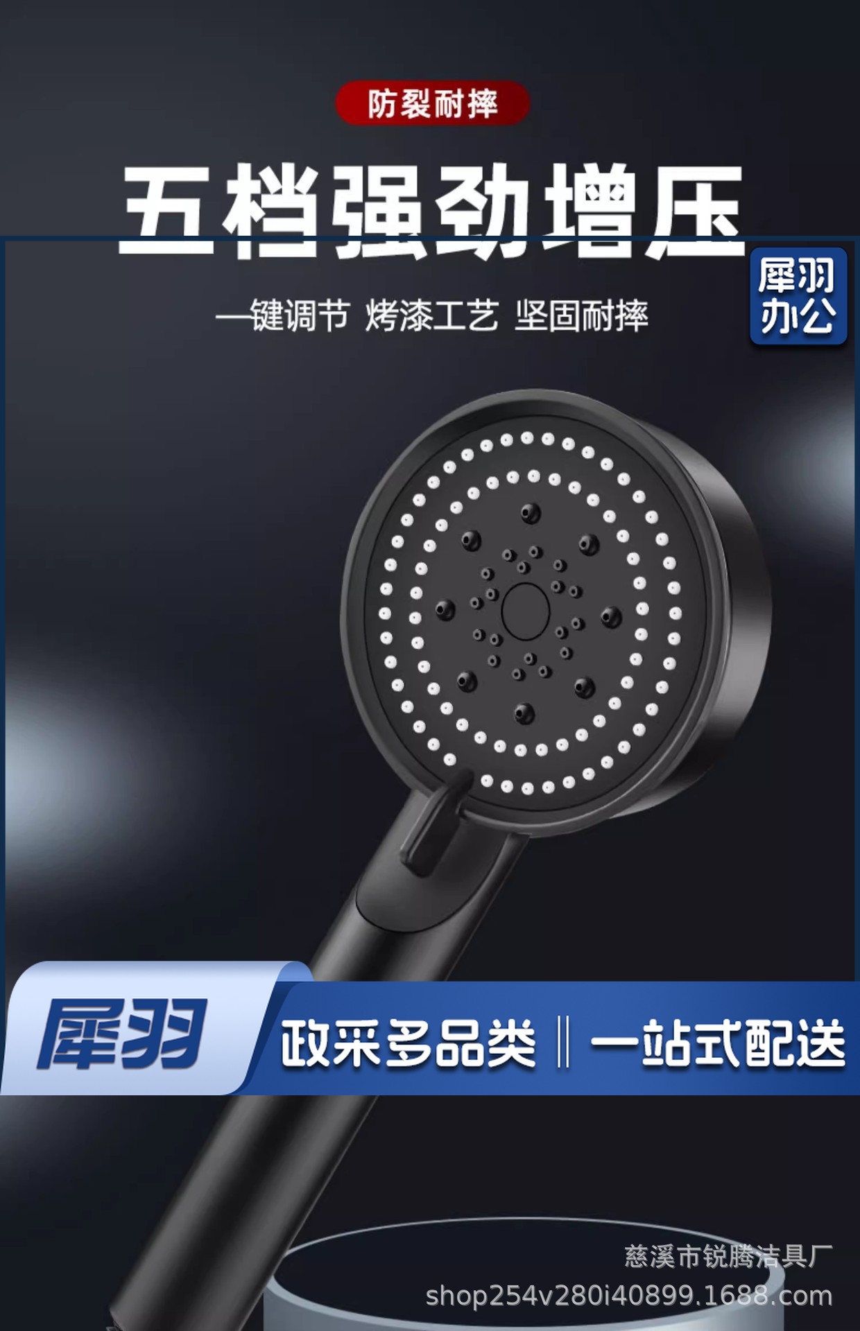 花洒喷头 淋浴喷头 淋浴配件 花洒配件 五档多功能大出水喷雾增压淋浴手持式花洒喷头磨砂黑色莲蓬头套装(厦门免打孔银色)