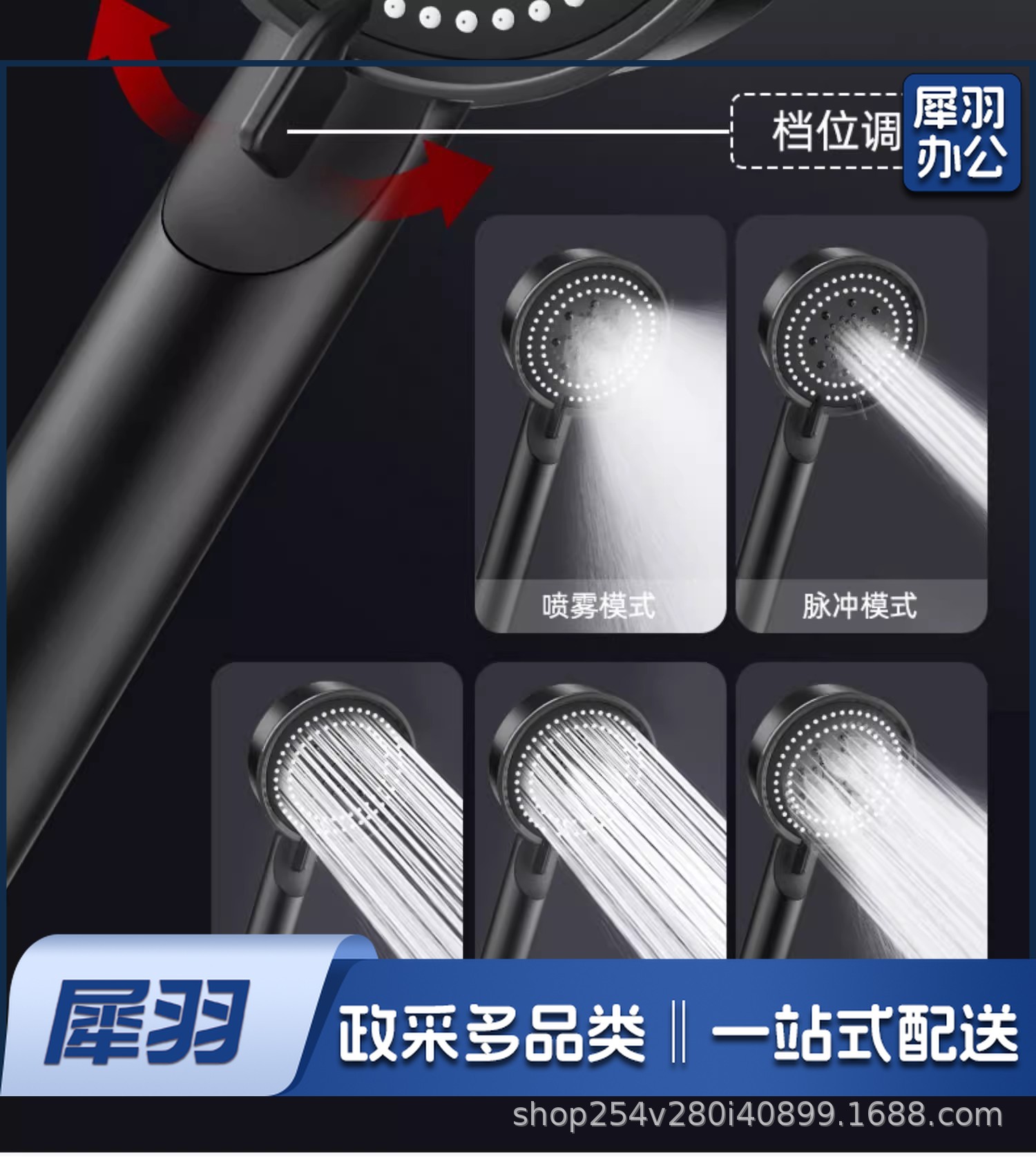 花洒喷头 淋浴喷头 淋浴配件 花洒配件 五档多功能大出水喷雾增压淋浴手持式花洒喷头磨砂黑色莲蓬头套装(厦门免打孔本黑色)