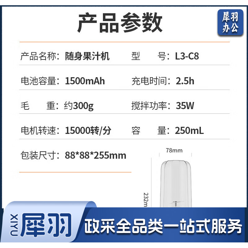 九阳(Joyoung)榨汁机水果小型便携式迷你电动多功能料理机果汁机榨汁杯可打小米糊 L3-C8