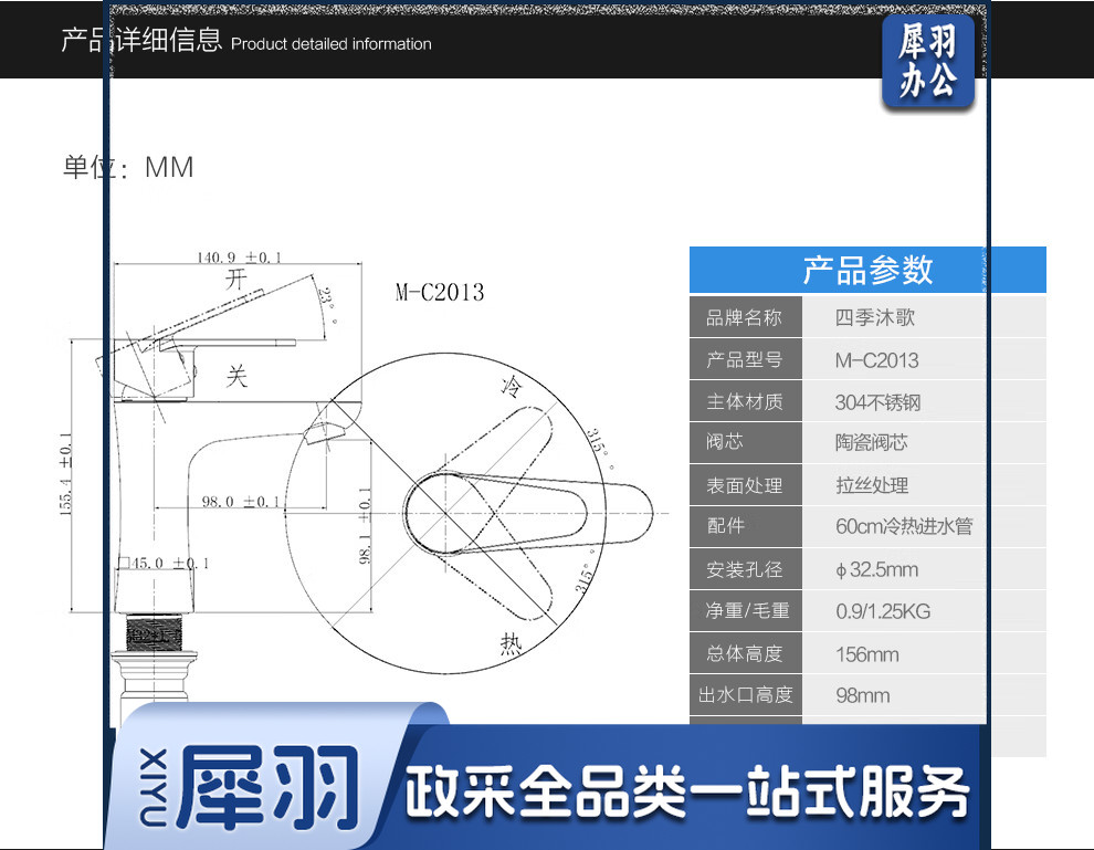 四季沐歌面盆水龙头304不锈钢冷热水龙头浴室卫生间洗脸盆台盆通用