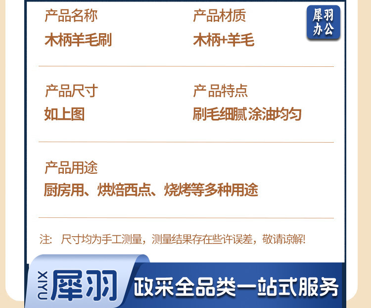 食品级羊毛刷烧烤专用油刷子厨房烙饼刷油酱月饼家用烘焙工具商用 1支装羊毛刷大号