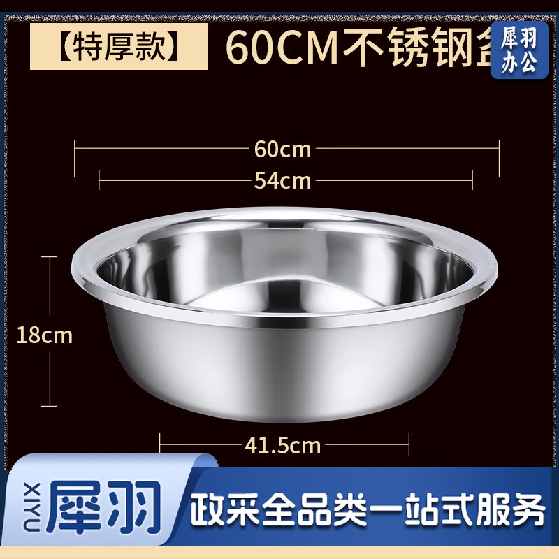 60CM不锈钢盆大号特大盆子厨房大盆家用洗脸盆商用铁盆不锈钢盆 加厚60cm不锈钢盆