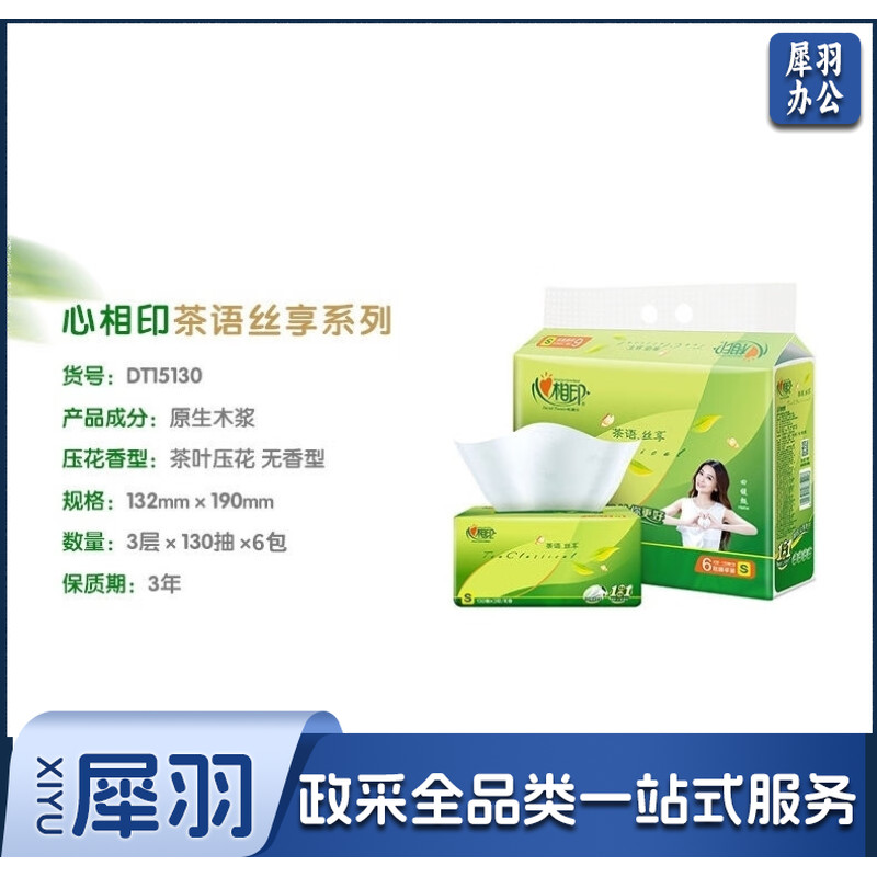 心相印 抽纸3层茶语丝享系列塑装纸无香面巾纸 3层*130抽*24包 箱装)