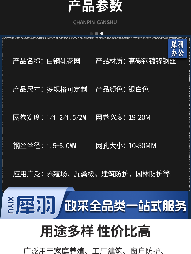 热镀锌轧花钢丝网 铁丝网 铁线围栏1.2米高20米 /卷 3毫米丝 30毫米孔