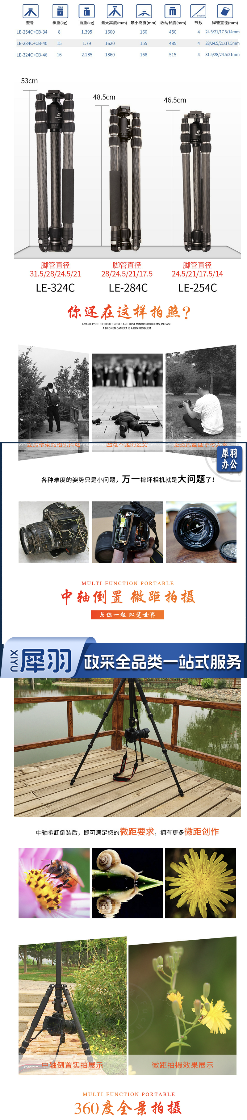 徕图(Leofoto)LE-284C+CB-40单反相机碳纤维三脚架摄影支架带中轴可反折云台套装