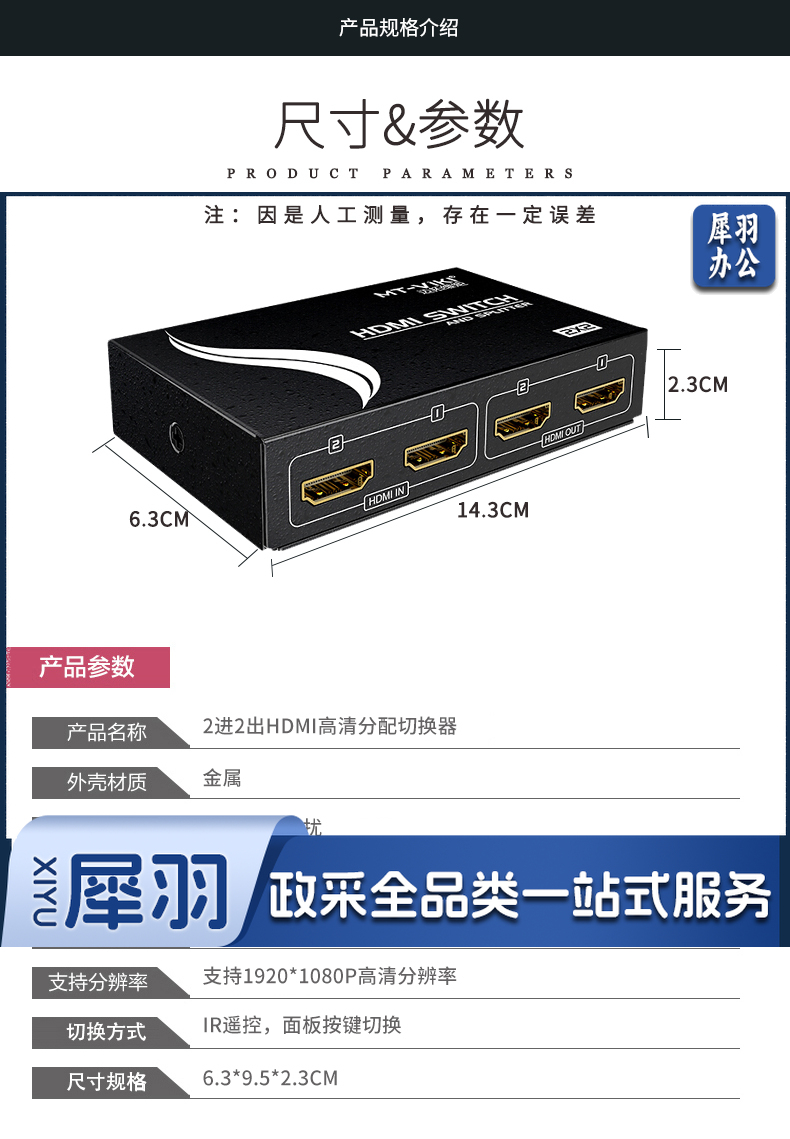 迈拓维矩 MT-HD2-2 HDMI切换分配器2进2出
