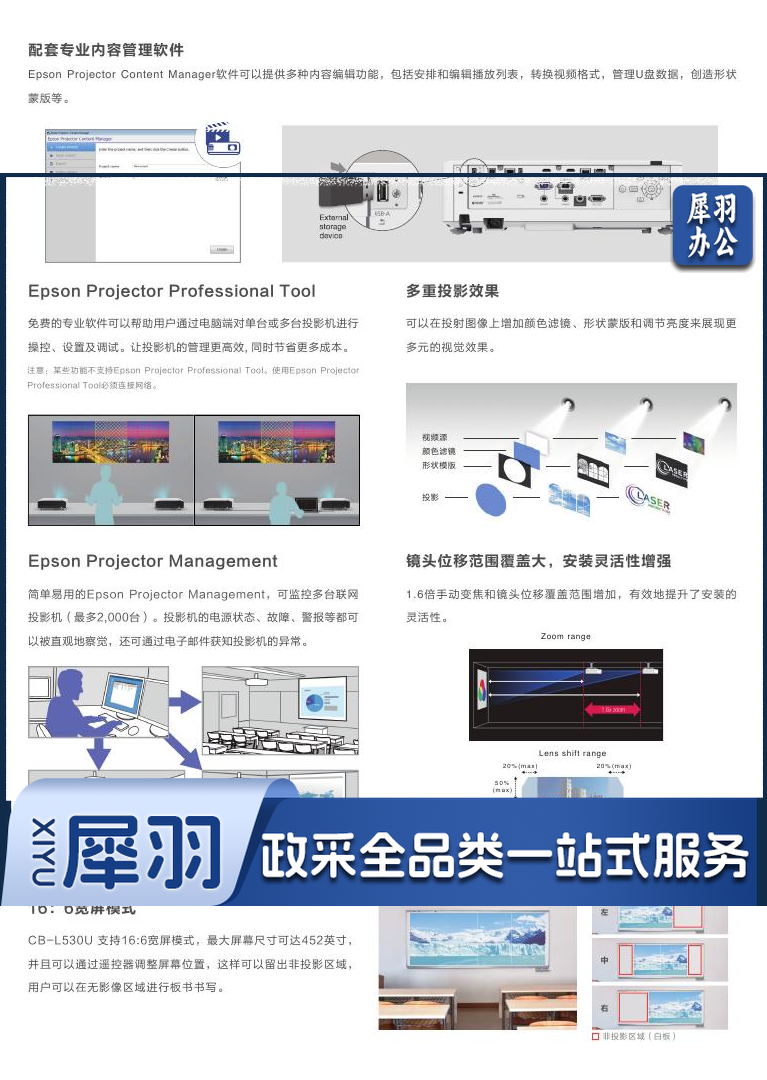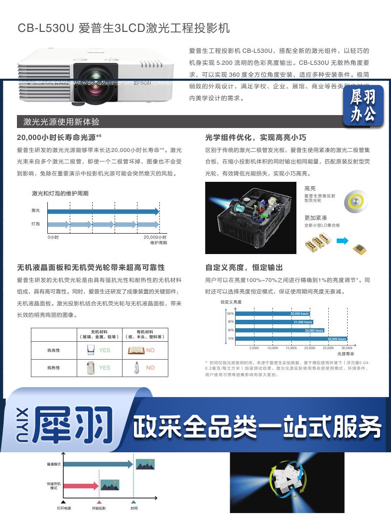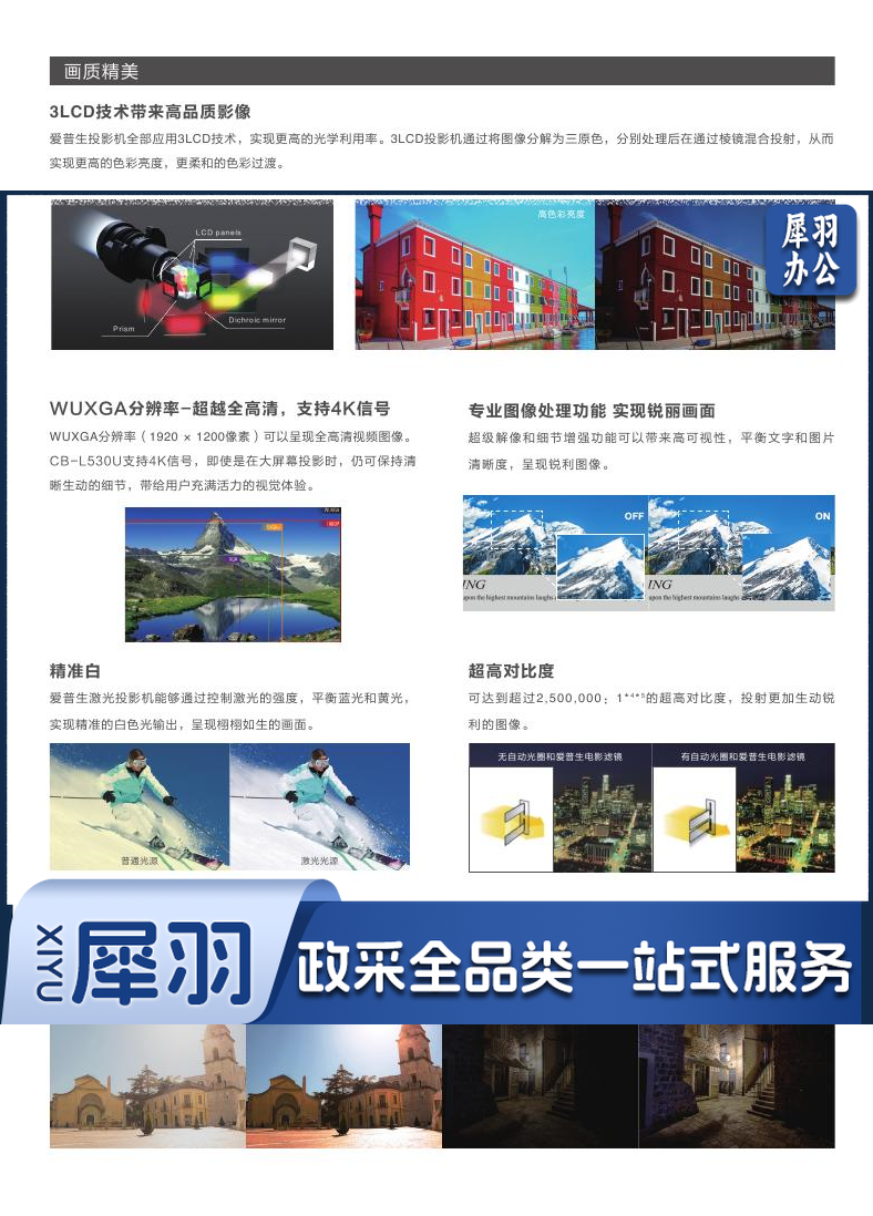 爱普生(EPSON)CB-L530U 投影仪 办公 会议 单主机