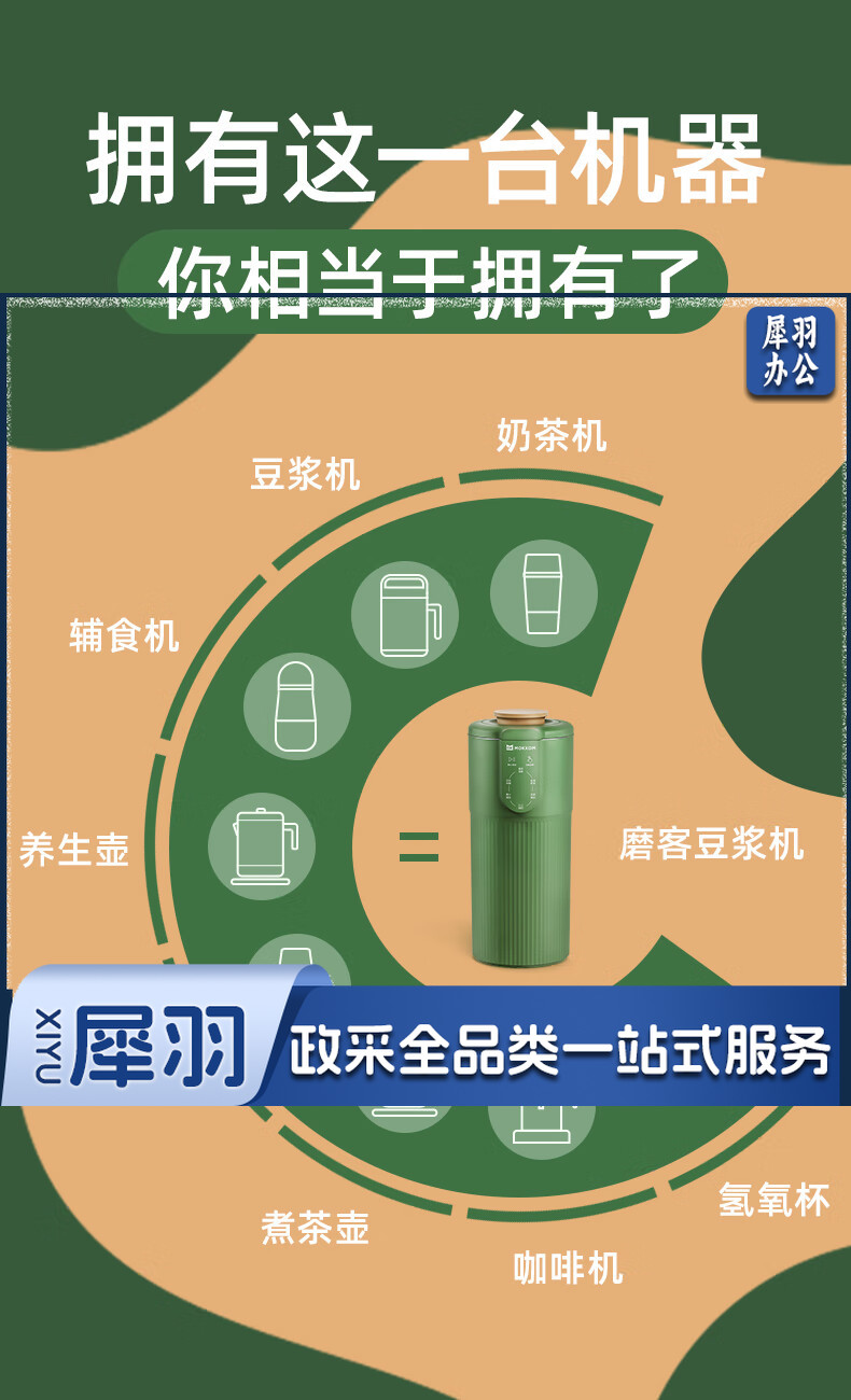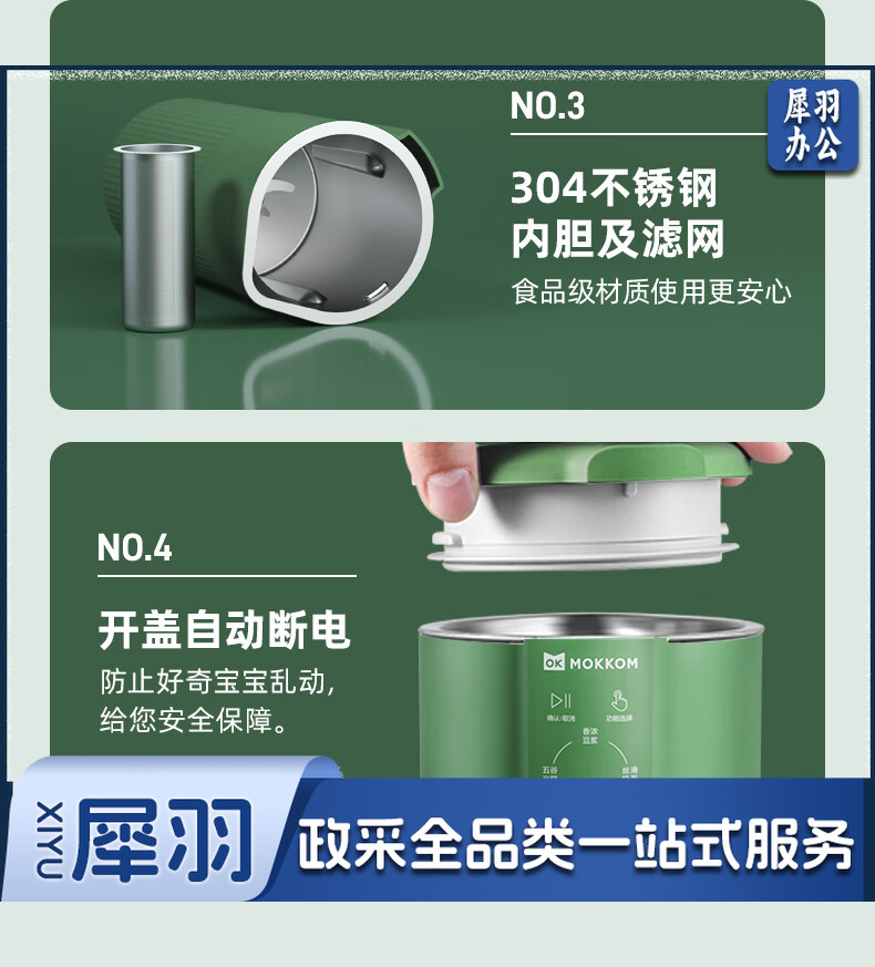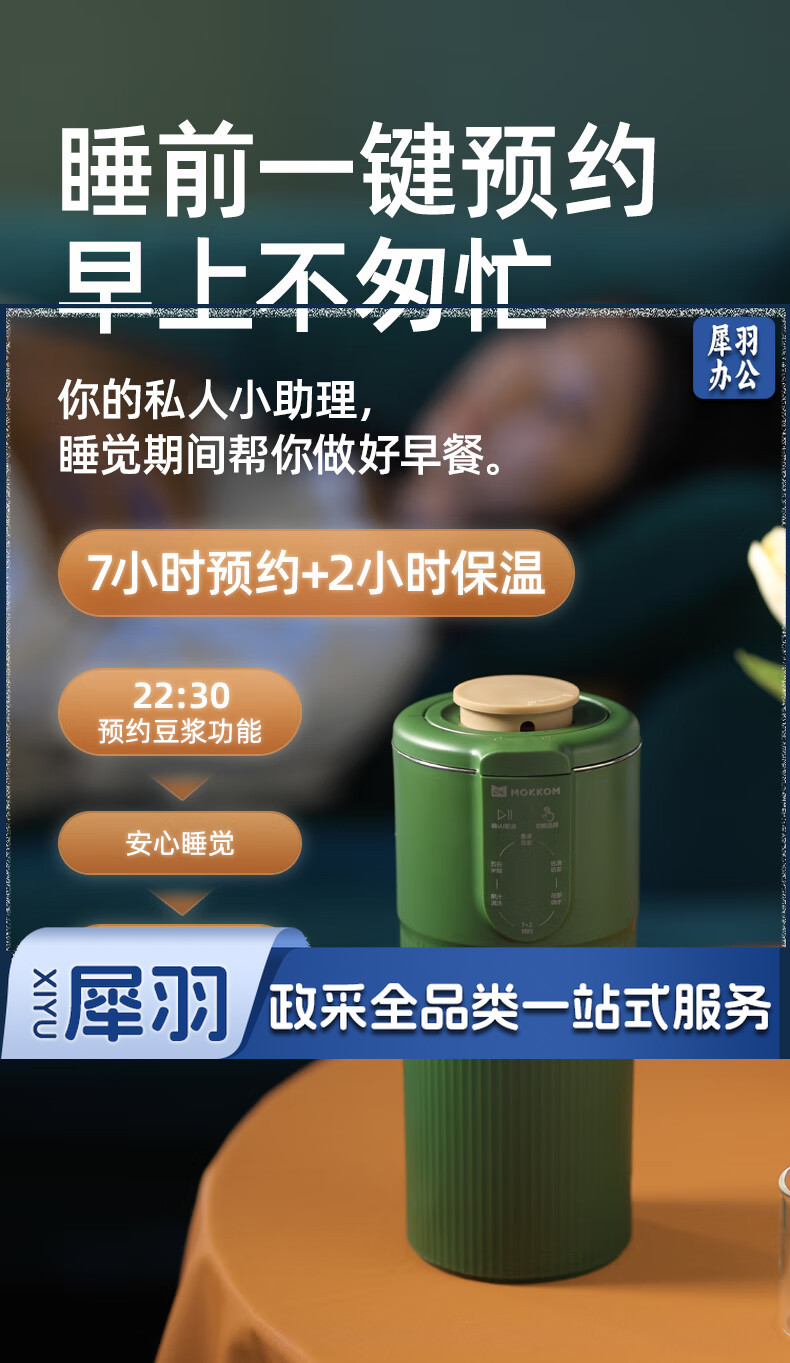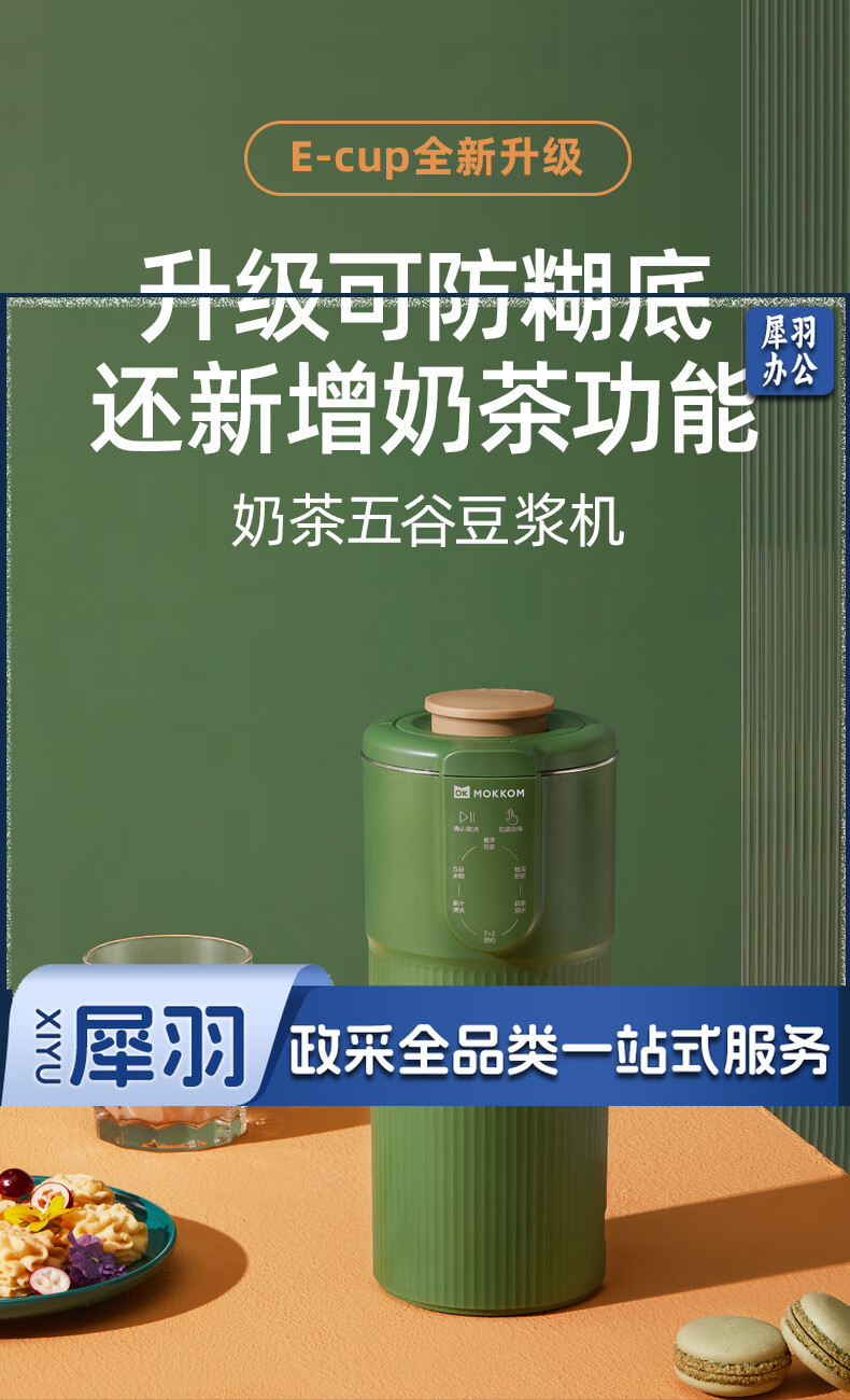 mokkom迷你小型豆浆机辅食料理机家用单人破壁多功能榨汁机奶茶机果汁机 豆蔻绿MK-582