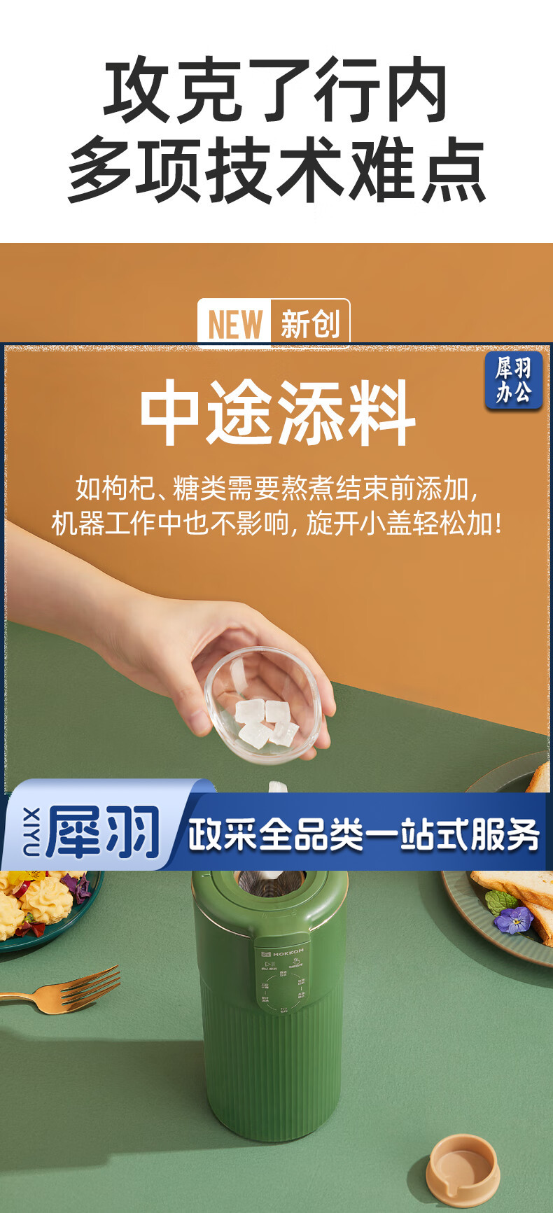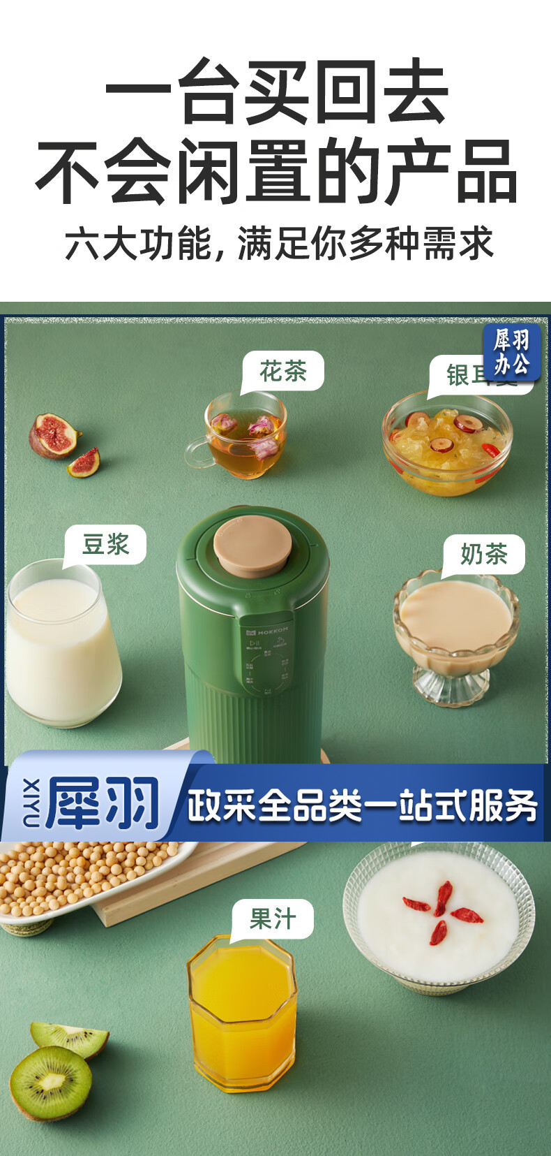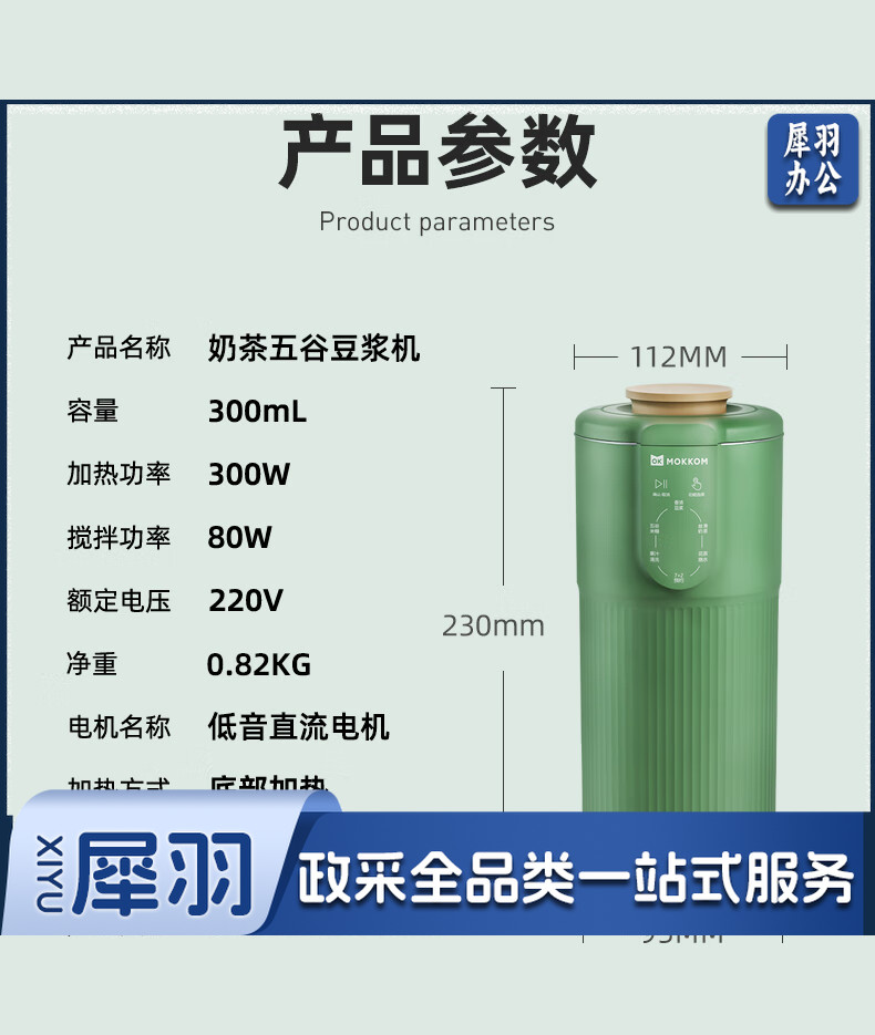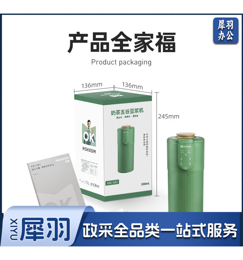 mokkom迷你小型豆浆机辅食料理机家用单人破壁多功能榨汁机奶茶机果汁机 豆蔻绿MK-582